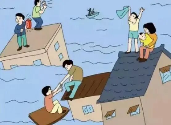 ►选择高层建筑的平坦楼顶、学校、医院等距离较近、地势较高、交通较为方便、卫生条件好的地方躲避内涝。