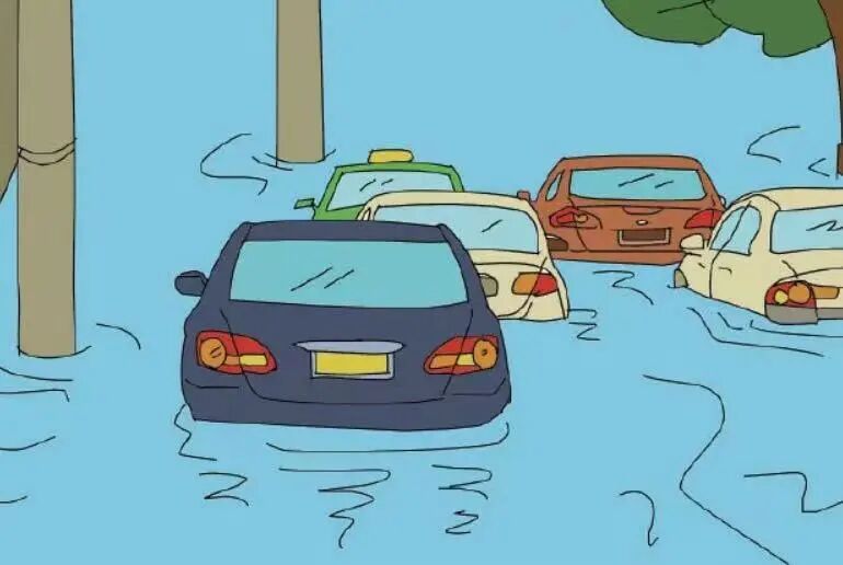 ►不要贸然涉水前行,警惕井盖、下水道等,避开路面旋涡区域。