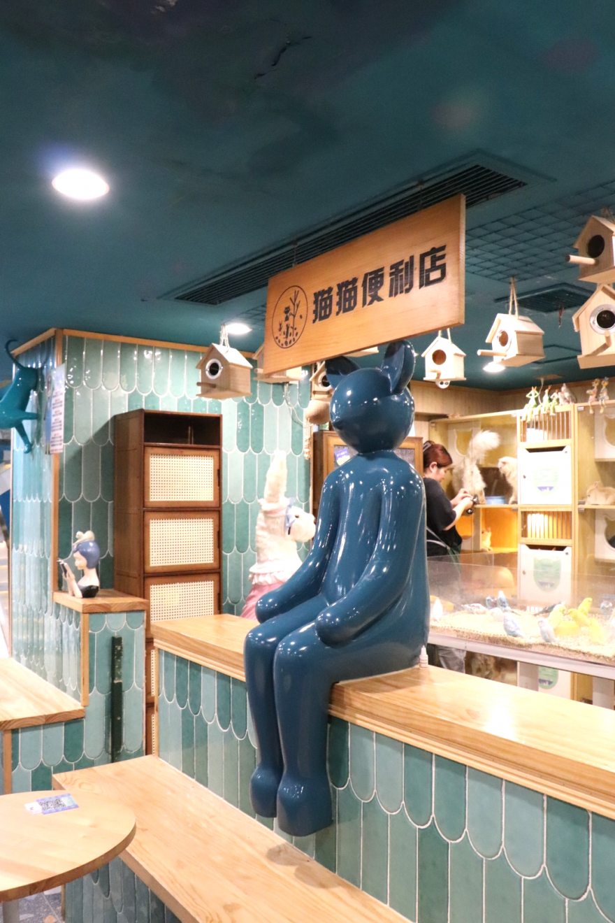 蓝色的门头仿佛通往爱丽丝仙境的大门,透明橱窗里展示的“哈基米”和门外摆放的萌萌哒玩偶,让人忍不住想要进去一探究竟!