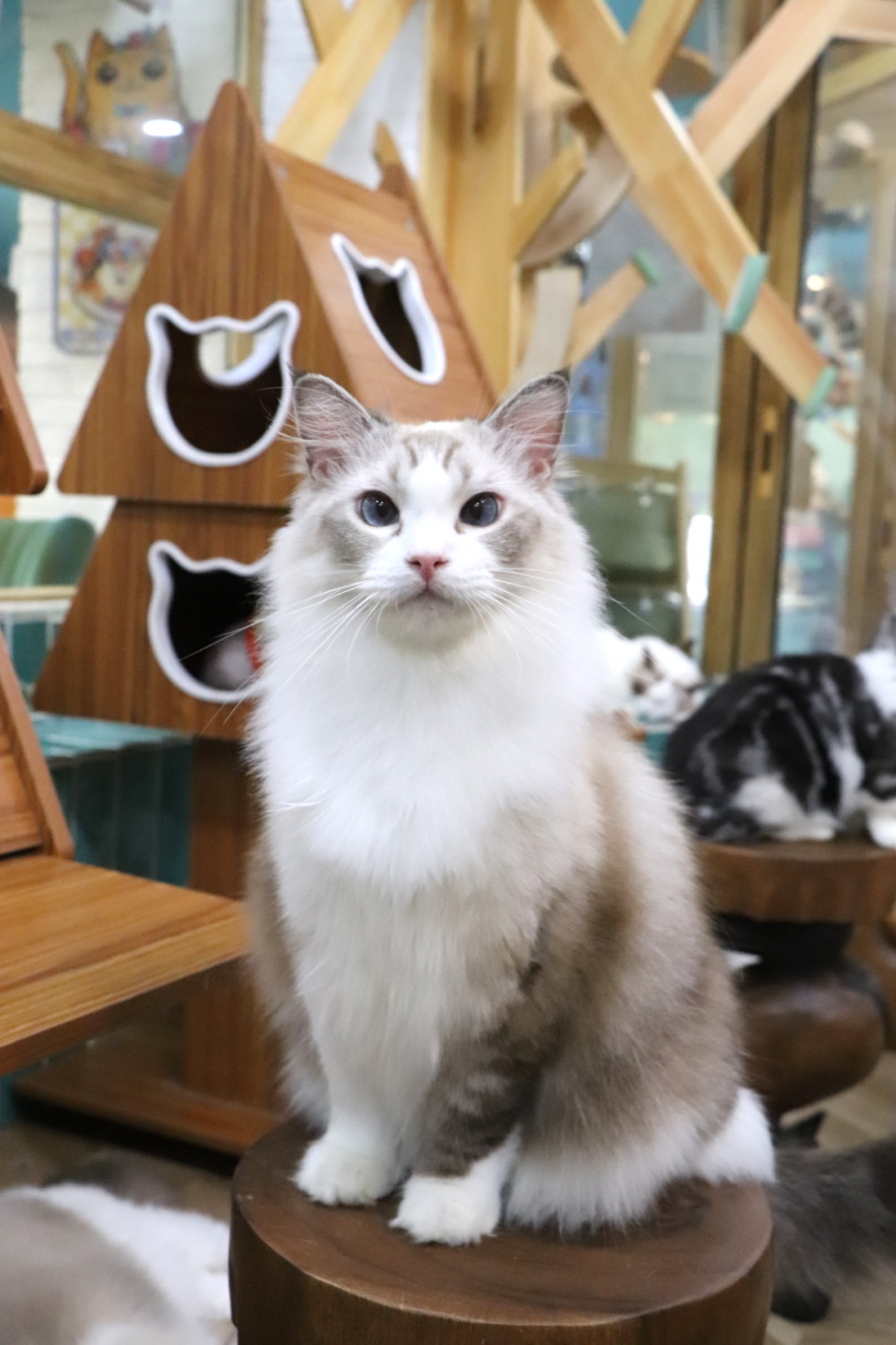 颜值“霸主”当然是仙女布偶猫“胖胖虎”,有着蓬松的毛发,渐变的面具和海水般碧蓝的眼眸。
