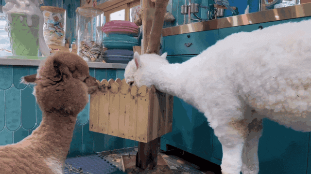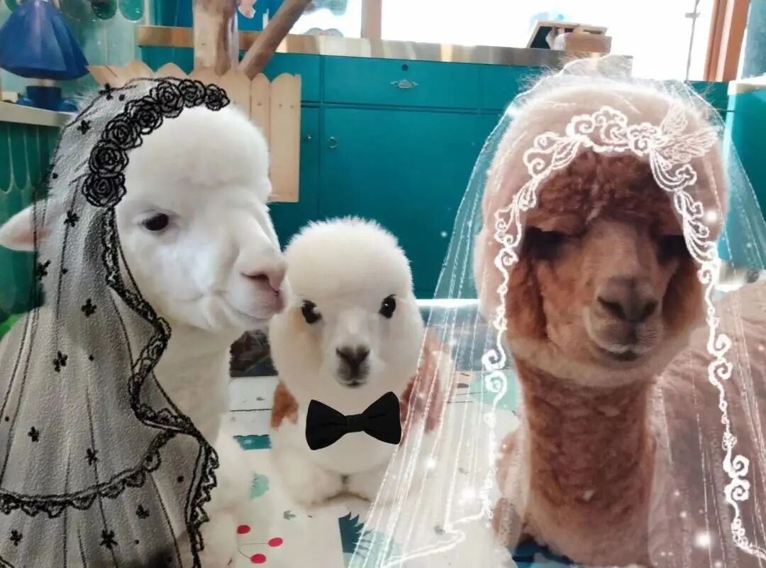 店内的门面担当是分别叫“罩罩”“得得”“住住”的三只羊驼,寓意着“罩得住猫咖店的福气”。