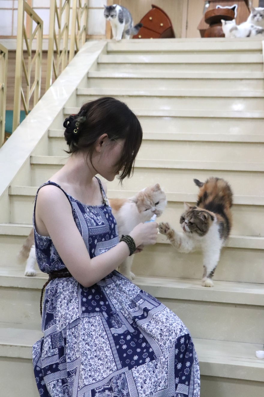 “每当有压力或烦恼的时候,猫咖店就是个绝佳好去处,和软萌的‘哈基米’玩一会,所有的疲惫与烦恼就能一扫而空。”顾客李小姐说。