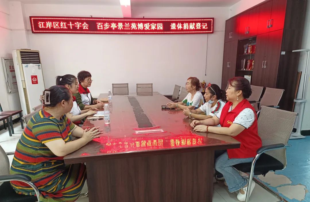 区红十字会走进百步亭景兰苑小区帮助3位志愿者办理遗体捐献志愿登记,今年百步亭景兰苑博爱家园已有6名志愿者签署了遗体捐献登记,也因为有了这群可爱可敬的红十字志愿者,越来越多人加入到了这个“以爱之名,生命接力”的行列里,将红十字人道、博爱、奉献精神的种子播撒到更多人心中,绽放出绚丽的生命之花。