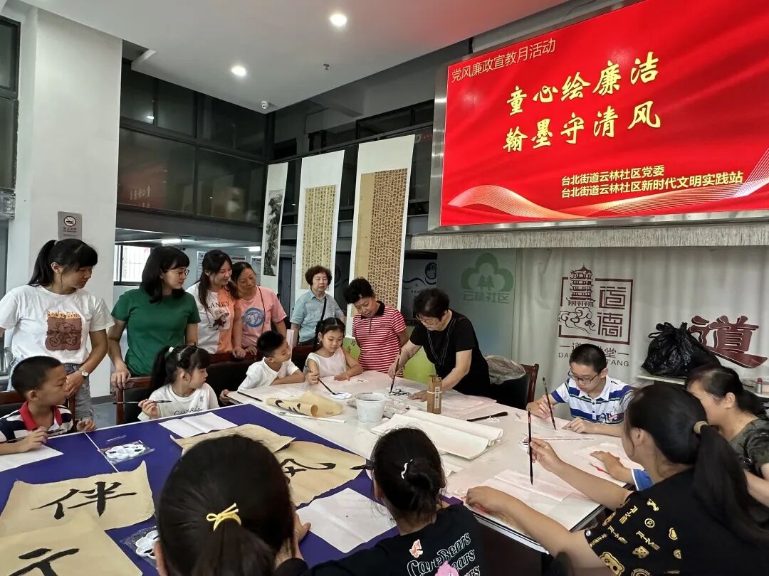 台北街道云林社区开展“童心绘廉洁 翰墨守清风”活动,邀请书画爱好者老党员现场教学,一笔一划,一纸一墨,一幅幅栩栩如生的清廉作品映入眼帘,让广大党员在笔墨丹青里感受到清正廉洁的价值观,切实增强廉洁自律意识,筑牢遵规守纪,营造“以清为美、以廉为美”的良好社会氛围。