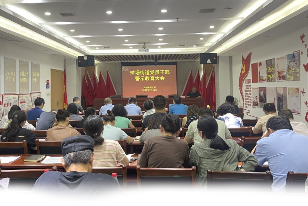 球场街道召开党员干部警示教育大会,全街60余名党员干部集体观看了警示教育片,街道工委书记围绕“警示”“自律”“他律”“思维”“作为”“规矩”六个中心词分享学习体会,讲授廉政党课。