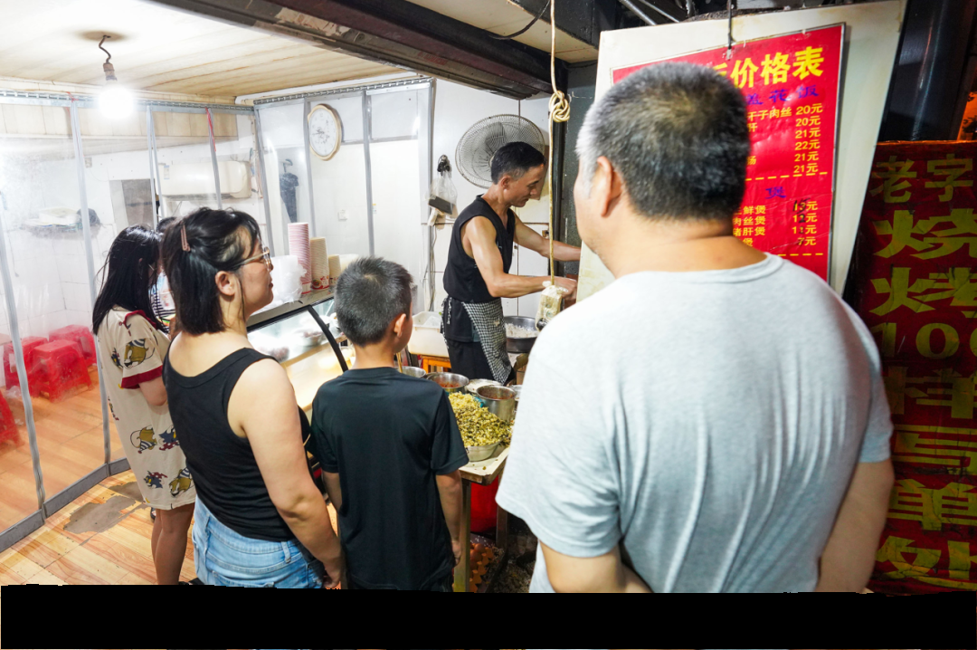经过惠济一路的行人,会在每天17点以后看到这样的场景:在离路口不远的一家名为“小雷炒花饭”的店门口,站着一长串排队的顾客,旁边还坐着几位正大快朵颐的顾客,这就是小雷炒饭的店面。