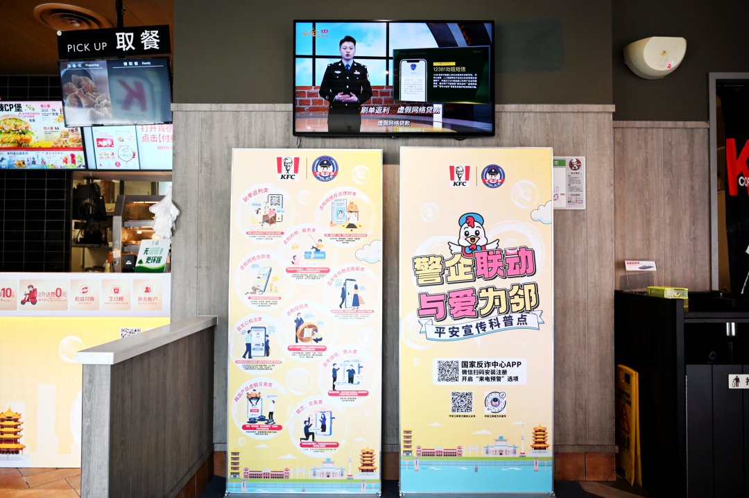 将印有“平安江岸反诈宣传员”字样的红袖标