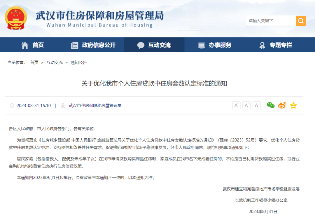 为贯彻落实《住房城乡建设部 中国人民银行 金融监管总局关于优化个人住房贷款中住房套数认定标准的通知》(建房〔2023〕52号)要求,优化个人住房贷款中住房套数认定标准,支持刚性和改善性住房需求,促进我市房地产市场平稳健康发展,经市人民政府同意,现将相关事项通知如下: