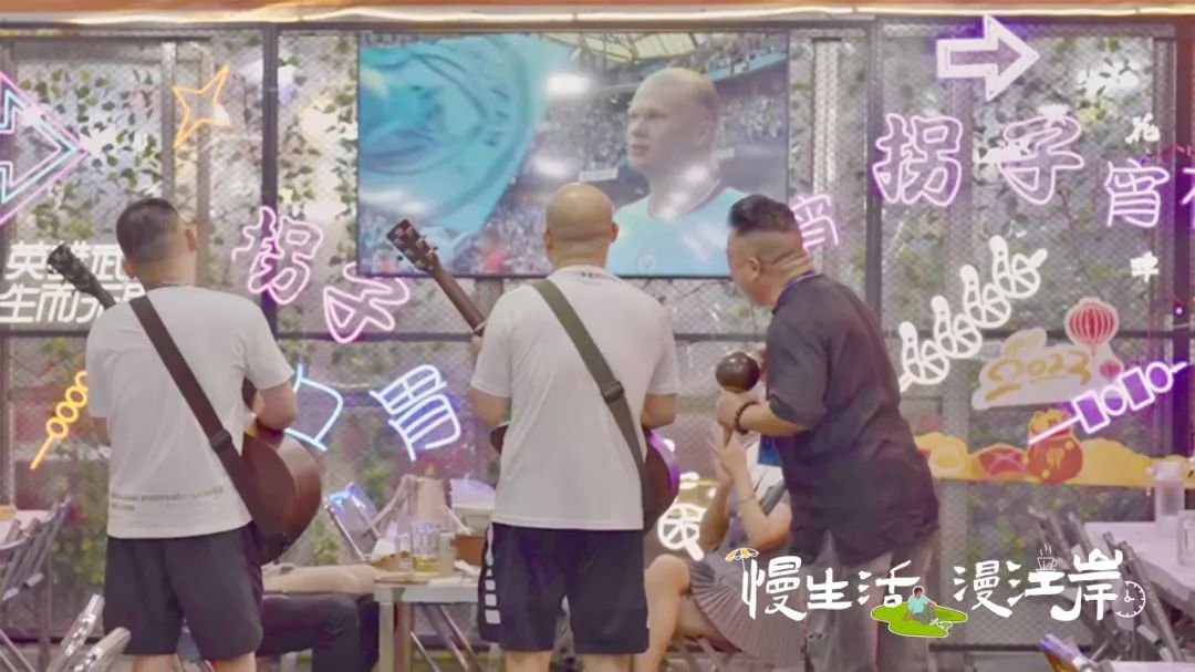 大家在夜市的烟火气中长歌纵酒,歌声聚集在一起,将一代又一代的记忆迅速拼凑起来,给平凡的画面赋予了别样意义。