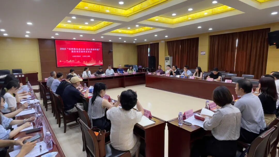 区司法局联合区工商联召开2023“法律服务进企业·优化营商环境”服务项目清单发布会,现场公开服务获取方式。邀请辖区16家民营企业和7家律师事务所代表参会,引导民营企业依法经营、廉洁从业,建设清廉民企,共话法治化营商环境新篇章。