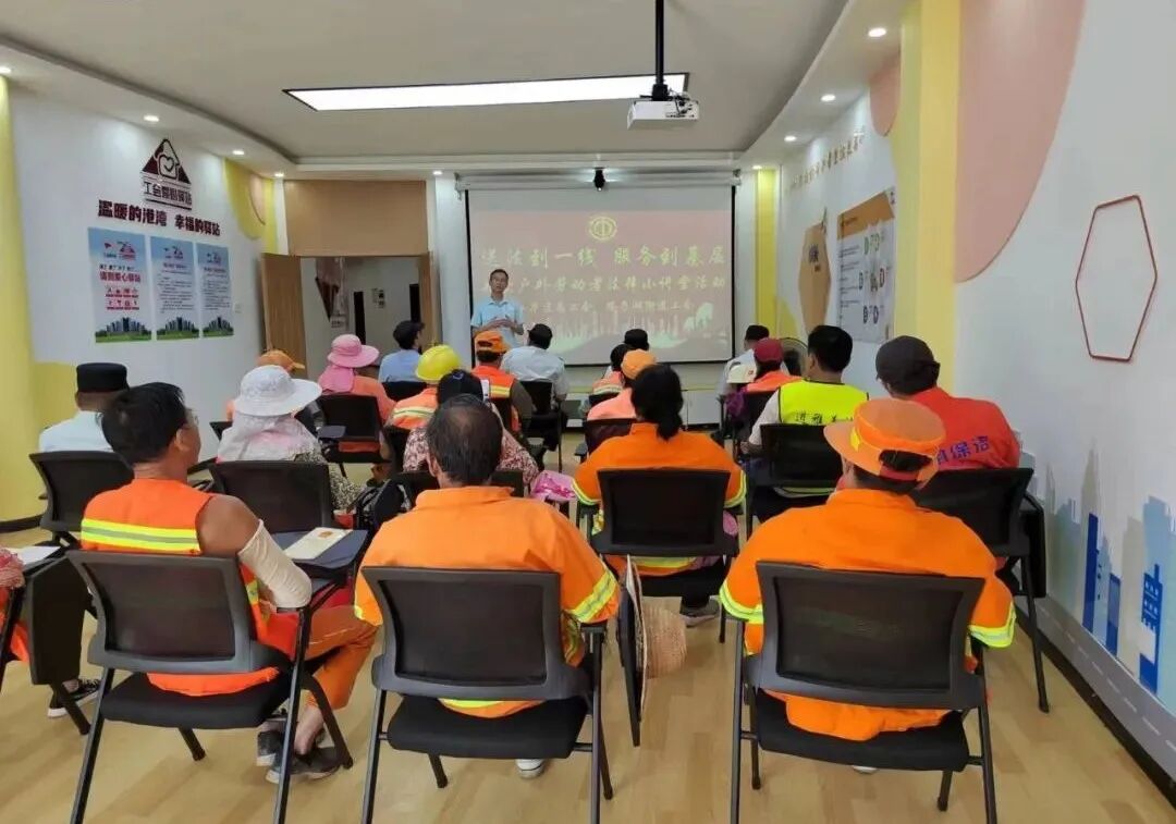 区总工会联合塔子湖街道工会开展“送法到一线 服务到基层”关爱户外劳动者法律小讲堂活动。现场讲解《民法典》中关系职工群众权利义务的重点条文,并针对民法典合同编、婚姻家庭编、侵权责任编中的常见问题,结合案例逐案分析,释法说理,引导户外劳动者树立学法、守法意识。