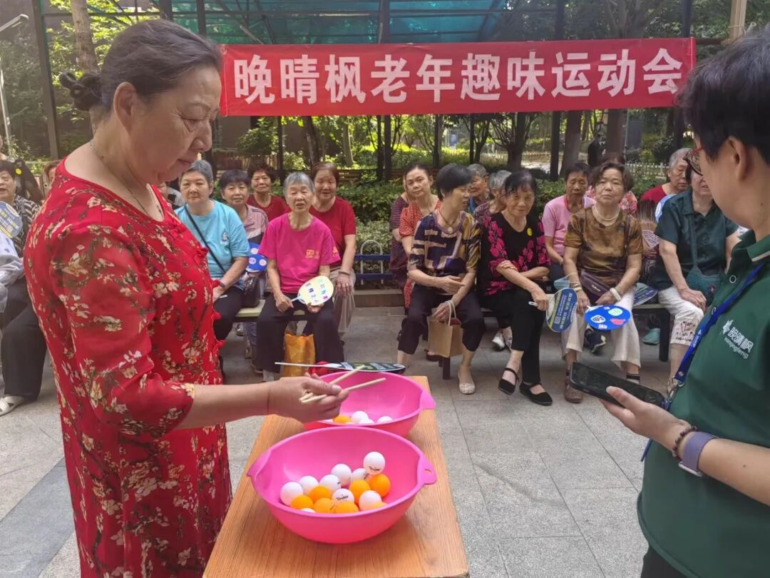 花桥街道红桥社区新时代文明实践站开展“银龄风采 年轻有我”老年趣味运动会,“端球曲线走”“吹球过河”“筷子捞月”“脚踩祥云”和“盲人吃香蕉”等活动吸引40多位社区老年居民到场参与,夕阳红队、闪亮登场队、魅力无限队你追我赶,现场气氛活跃,充满欢声笑语。