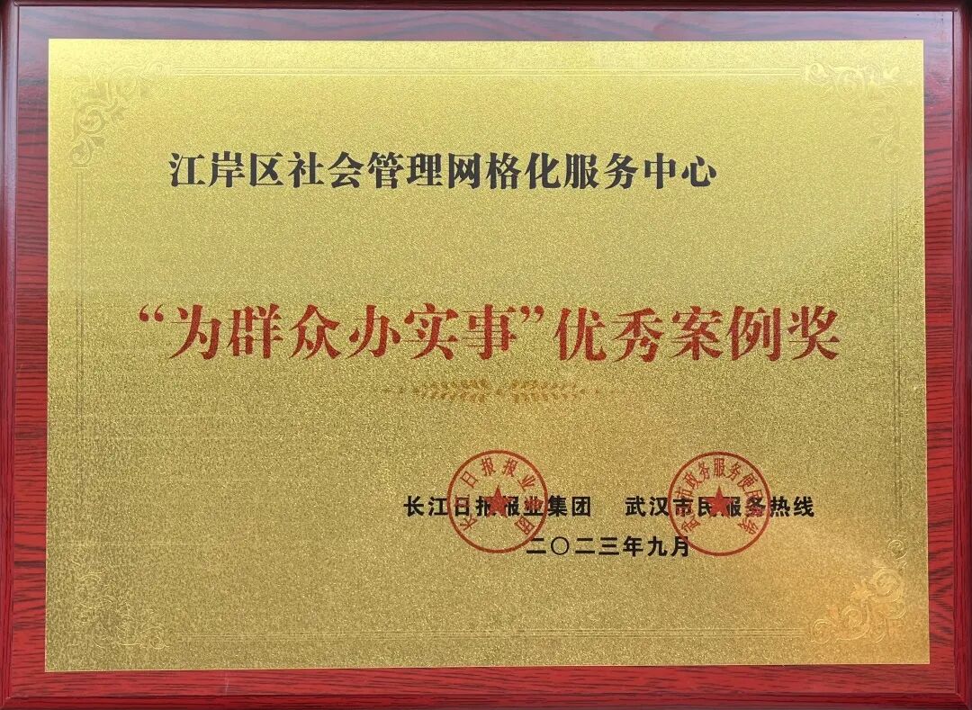 区社会管理网格化服务中心关于“责任存争议地下管网难疏通,多方联动另辟蹊径解决顽疾”案例,在长江日报、武汉市民服务热线联合举办的“为群众办实事”优秀案例活动中,荣获“为群众办实事”优秀案例奖。