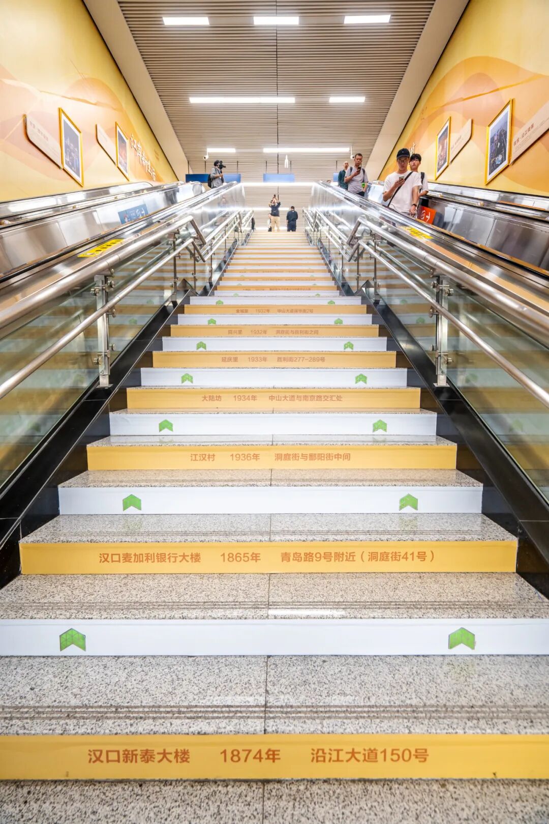 这些富有年代感的画作,如同一本记录城市记忆的画册,重现老汉口的历史街景,将文明空间打造成地铁里的江岸风貌展。