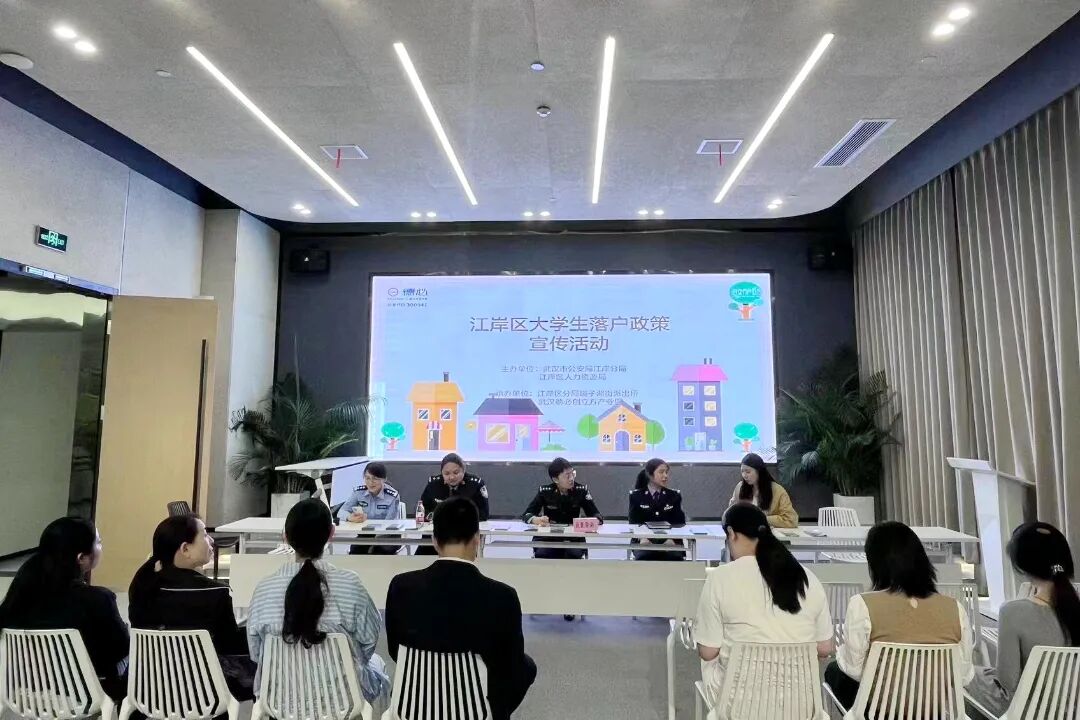 区公安分局统筹安排区政务服务中心公安窗口相关负责人到武汉德必创立方产业园开展大学生落户政策宣传活动,现场发放户籍政策宣传折页,为有落户需求的员工解读最新户籍政策信息,分析个人实际情况,提出合理的落户建议,指导办理落户手续。进一步扩大大学生政策知晓率,帮助落户、融入江岸。
