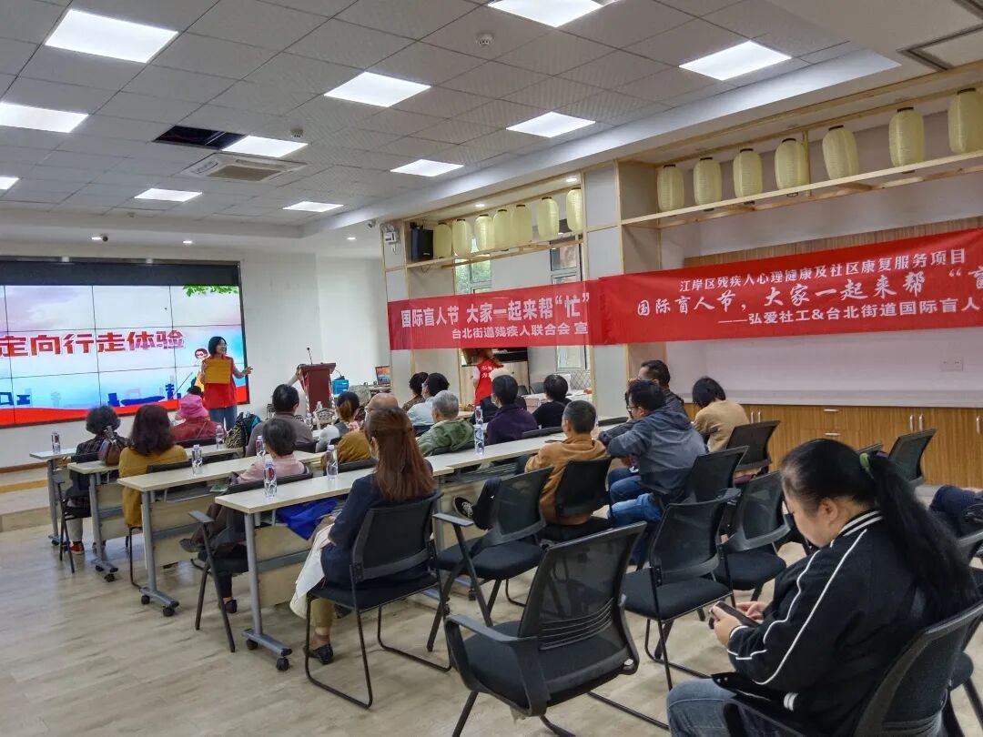 台北街道桃源社区举办国际盲人节“大家一起来帮‘盲’”活动,居民零距离参与互动,倾听其面临的难题和需求,了解到更多盲人文化和生活习惯,并通过亲身体验,让大家感受光影的美妙,同时加强对盲人的关注和理解。