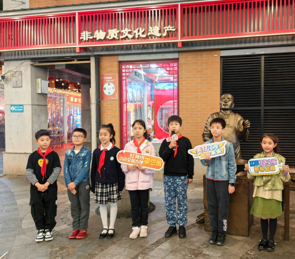 团区委组织第三届江岸区红领巾小小文旅大使们开展模拟导览实训。在黎黄陂路和吉庆街的城市导览路线上,以小学生的视角,用轻松愉快的方式,赋予老街道新的生命力,将武汉的历史和文化传递给每一位参观者。