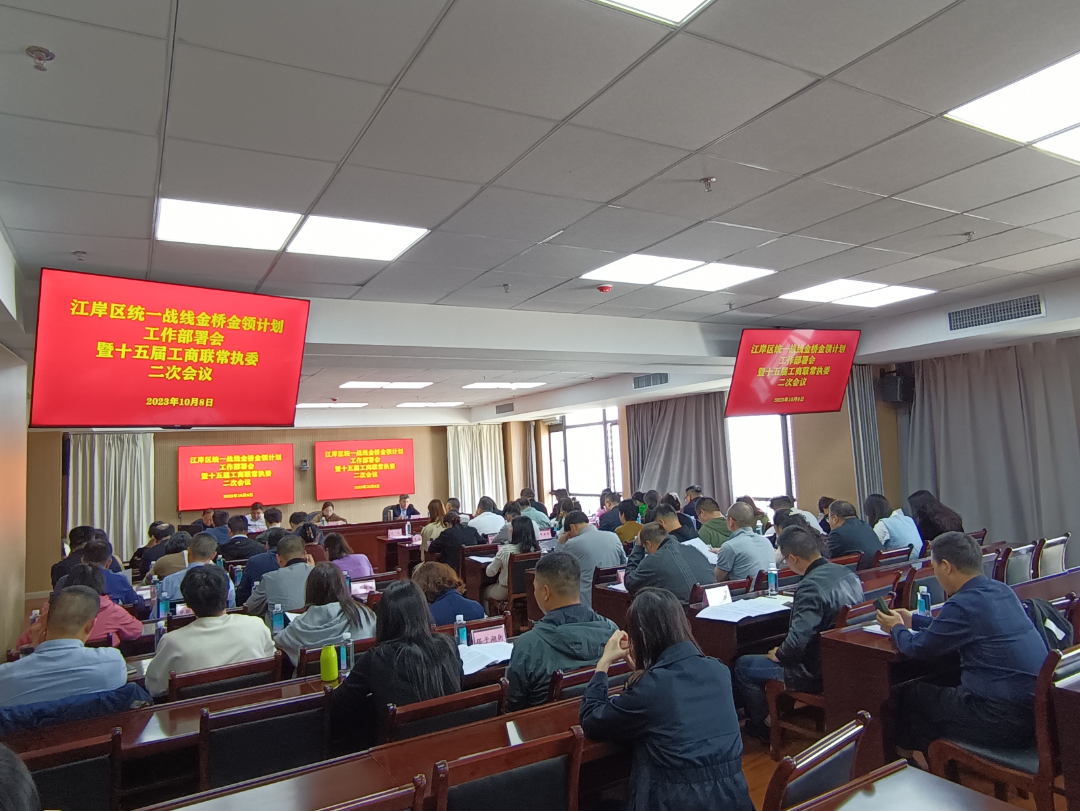 区工商联(总商会)召开金桥金领计划工作部署会暨第十五届常执委二次会议。会上传达了相关文件精神,部署街道商会注册工作、申报流程宣传、工商联系统清廉民企、双优引荐有关工作,并提出下一步将重点围绕理想信念教育、民营企业投诉中心、双优引荐、区总商会人民调解委员会建设等工作,发挥江岸区优质平台、企业、园区资源,通过多部门联动,开展阵地建设,擦亮江岸民营经济统一战线品牌。