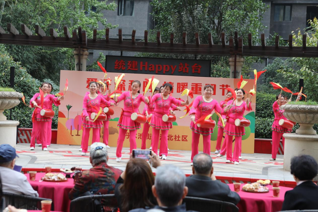 丹水池街道江北社区邀请辖区侨眷、少数民族群众、金婚夫妇,开展“爱在深秋时·九九重阳节”暨共同缔造美好环境与幸福生活主题活动。腰鼓《欢天喜地》、舞蹈《中华孝道》、太极节目《杨氏二十八式》等精彩绝伦的文艺汇演与游戏互动环节,让老人们度过一个温馨愉快的节日,营造出社区邻里守望相助和文明和谐的浓厚氛围。