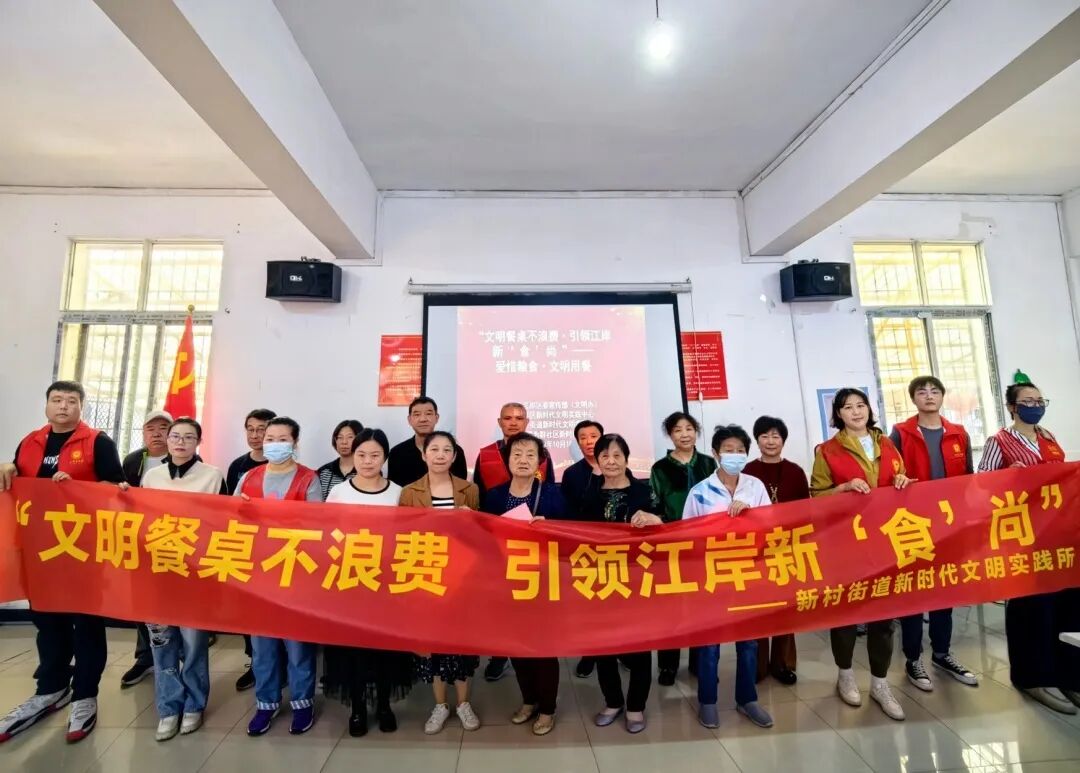 区委宣传部(文明办)组织新时代文明实践中心、新村街道新时代文明实践所、为群社区新时代文明实践站开展“文明餐桌不浪费 引领江岸新‘食’尚”之爱惜粮食、文明用餐主题宣传活动。观看专题纪录片,宣读、发放倡议书,引导居民群众养成理性消费习惯,自觉抵制餐饮浪费行为,形成浪费可耻、节约光荣的文明节俭用餐风气。