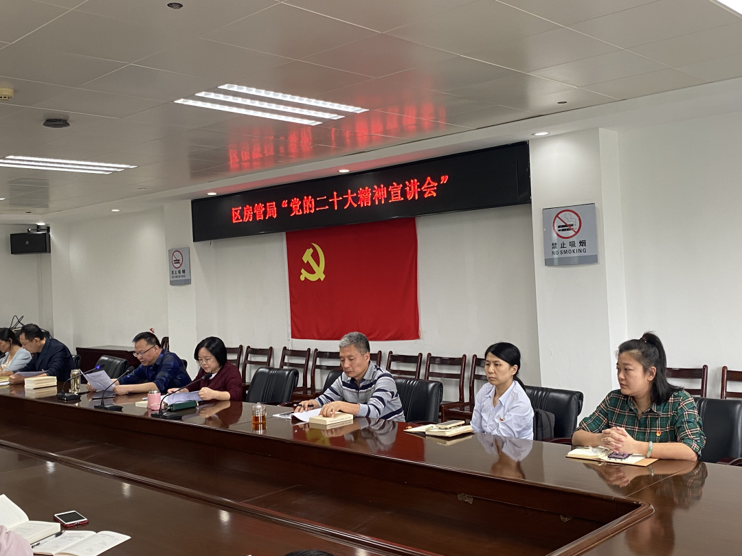 区房管局宣讲队成员吴军同志围绕学习贯彻党的二十大精神,从房管自身业务出发,面向中电建物业党建专员、信腾台北支部干事等物业公司党组织代表开展理论宣讲活动,进一步引导党员干部牢记初心使命、强化宗旨意识,为全面建成社会主义现代化强国、全面推进中华民族伟大复兴而团结奋斗。