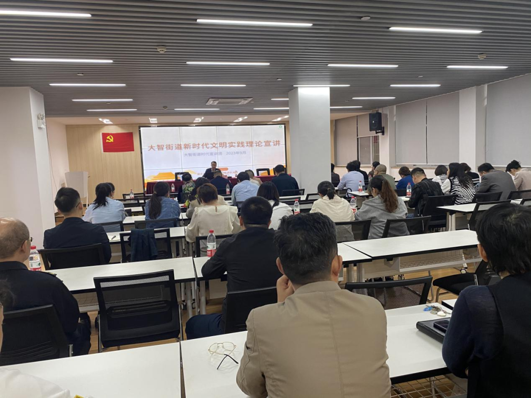 大智街道时代宣讲队走进先锋社区新时代文明实践站开展理论宣讲活动。宣讲队成员刘志刚以“新时代文明实践学思想重实践”为主题,围绕百年伟业红色传承、中国式现代化等内容向社区党员群众进行分享,进一步增强党员的宗旨意识和群众观念,在实践中锤炼党性。