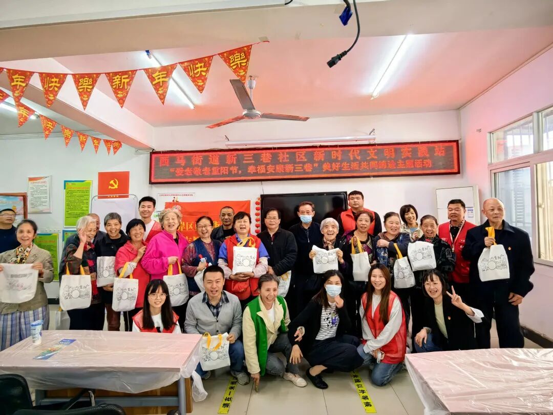 区委宣传部(文明办)组织新时代文明实践中心、西马街道新时代文明实践所、新三巷社区新时代文明实践站开展“情浓重阳 共赏夕阳”文明实践活动,现场向老人介绍重阳节的起源、指导制作创意环保帆布袋,通过实际行动关爱老人、传递爱心,为构建和谐幸福社区贡献力量。