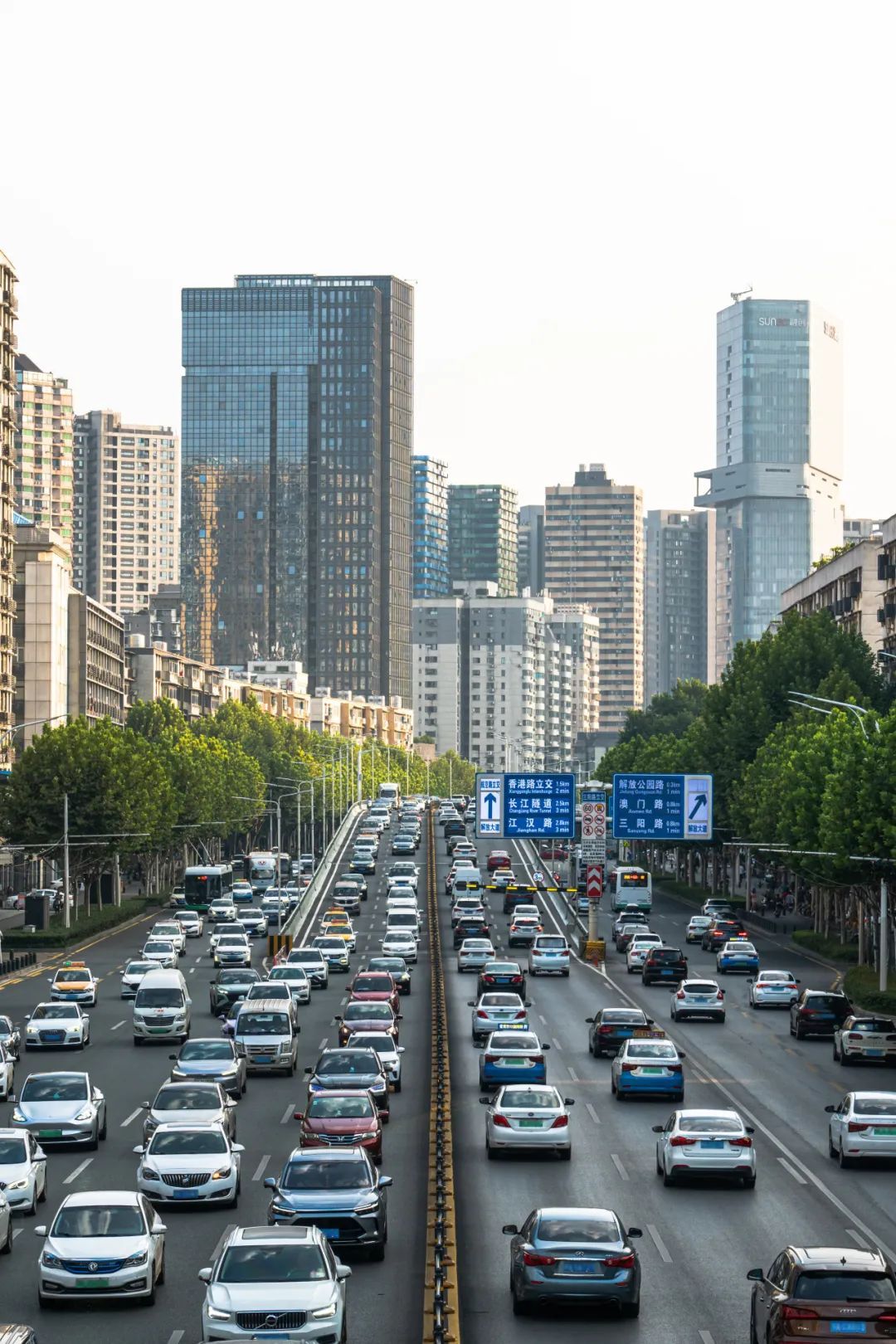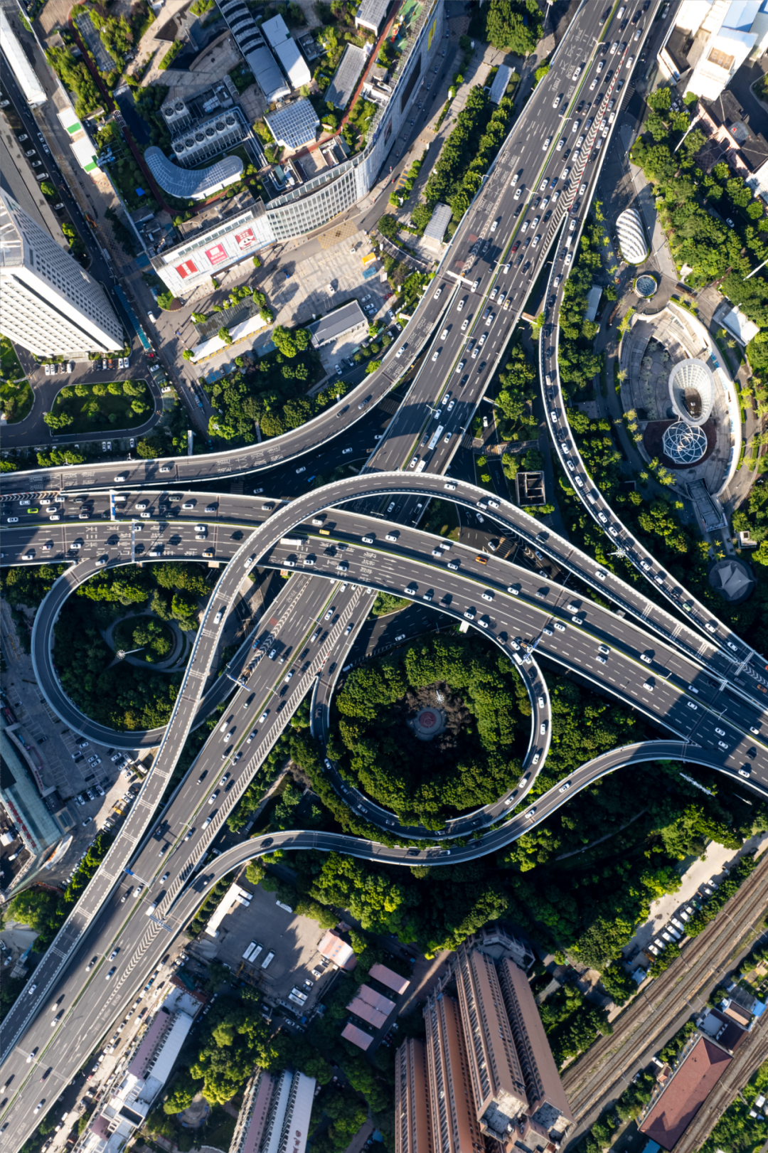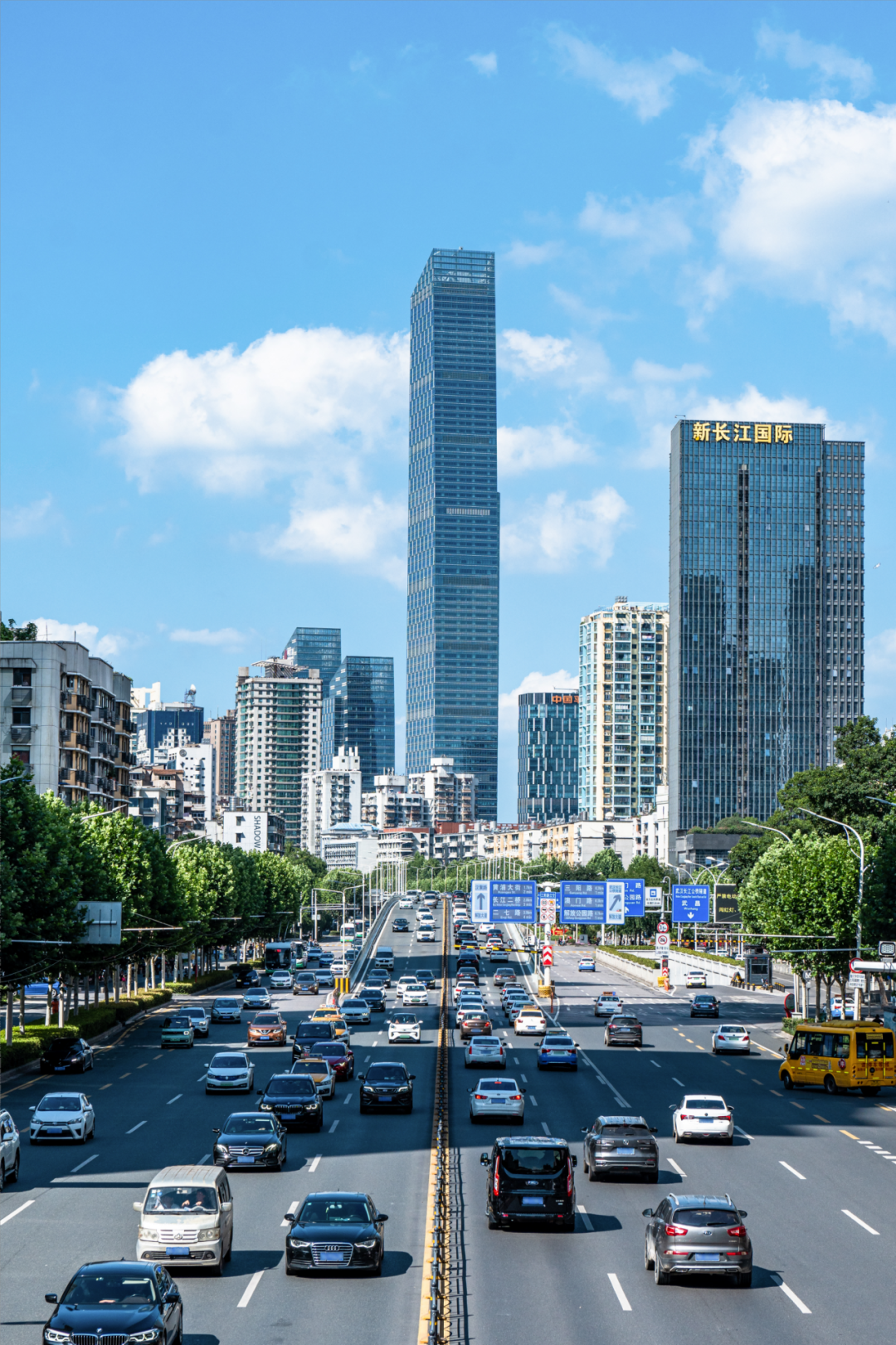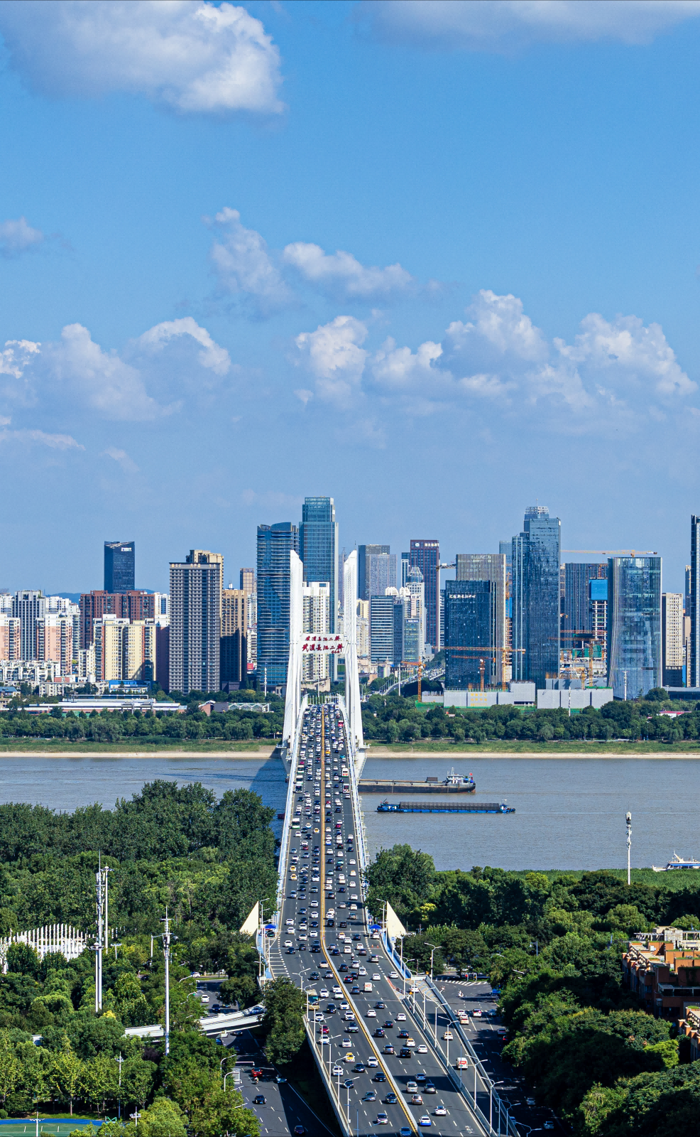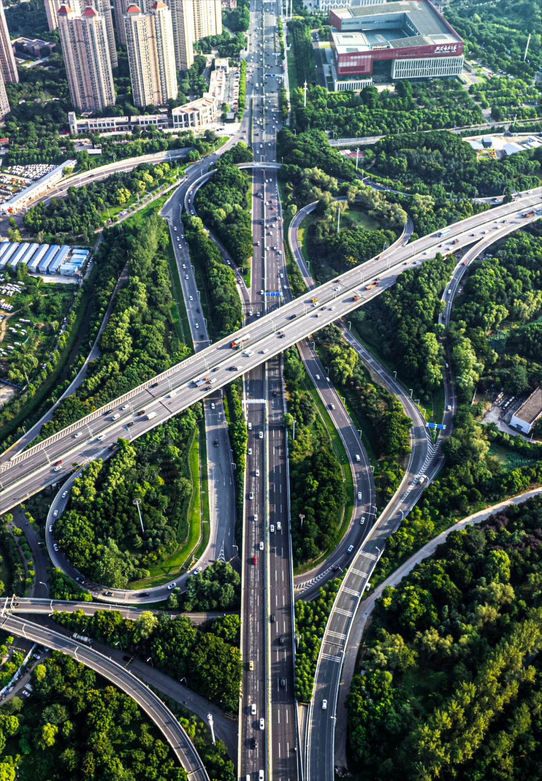 城市的经济发展离不开立交桥,竹叶山立交桥俯卧在江岸,默默地撑起车水马龙。在这里,扁平的交通变得立体,空间内的车流无需再等待红绿灯,大大增加通行效率,加快每一位城市奋斗者的逐梦速度。