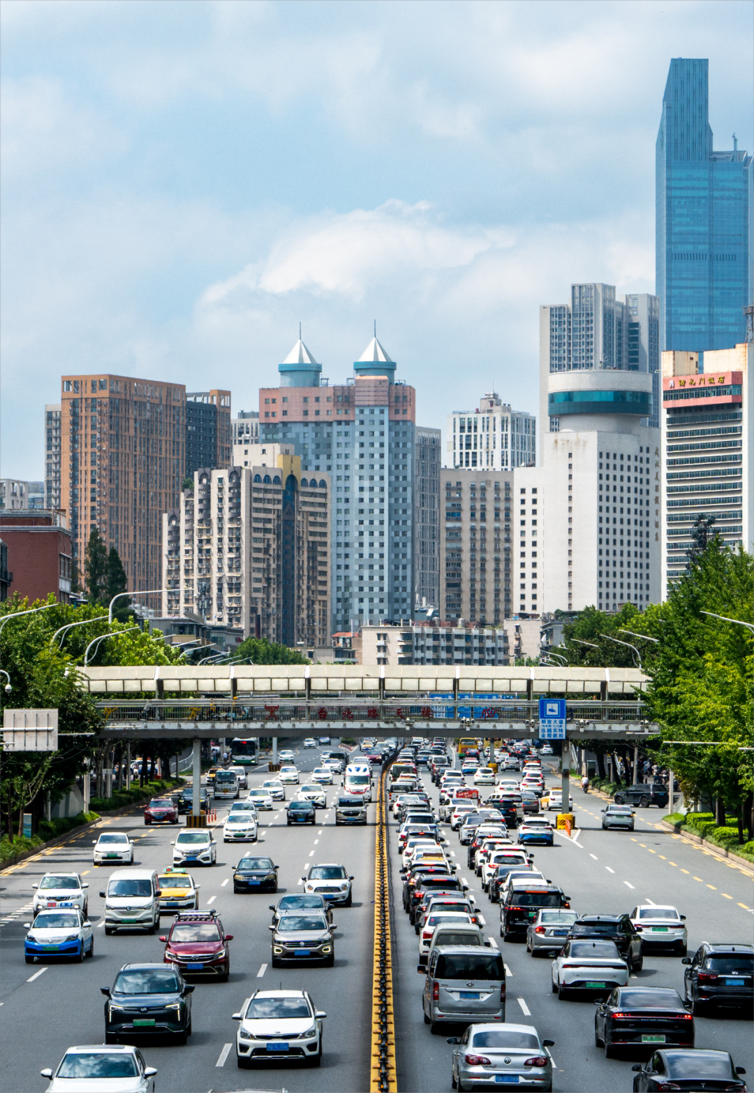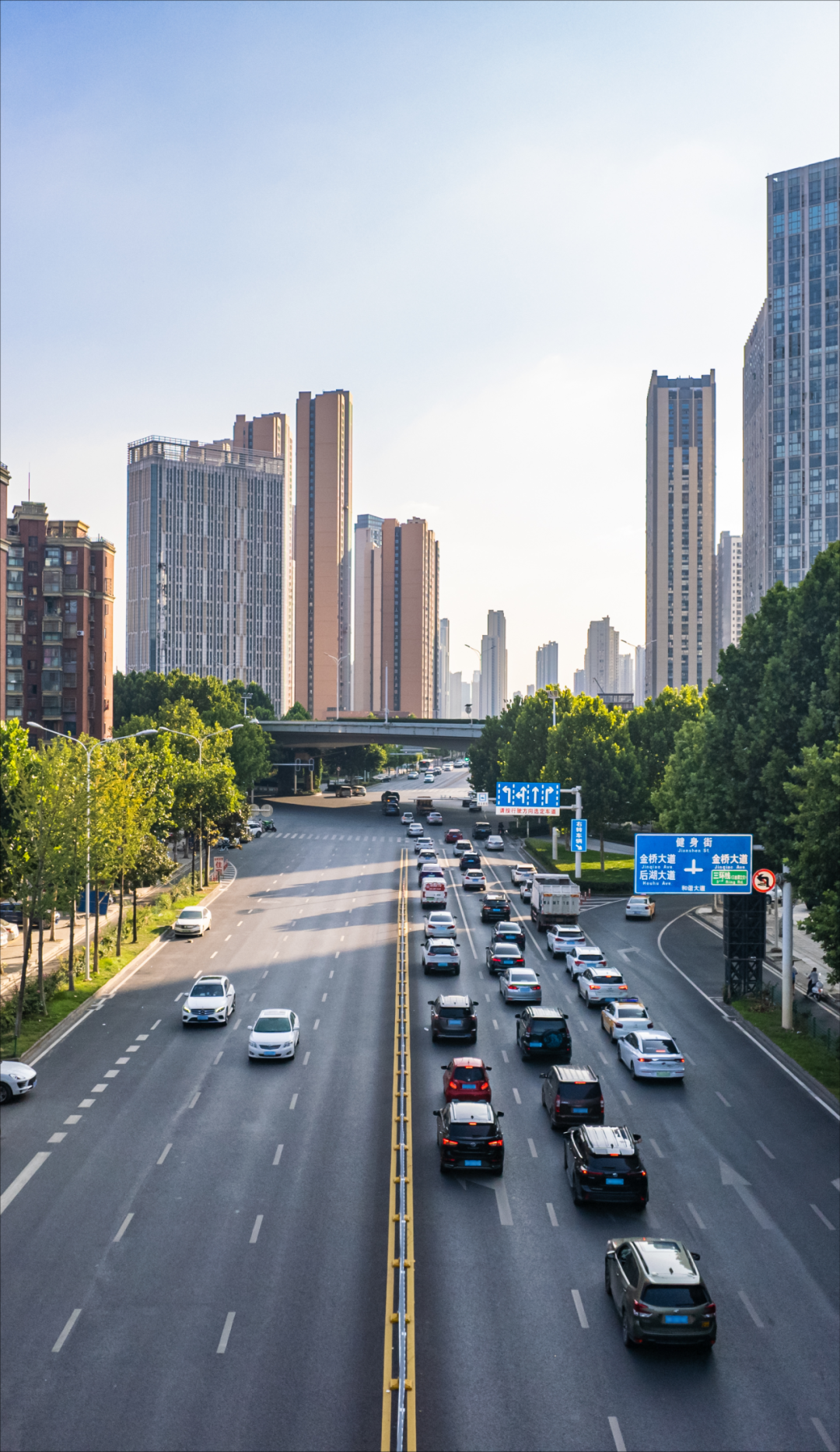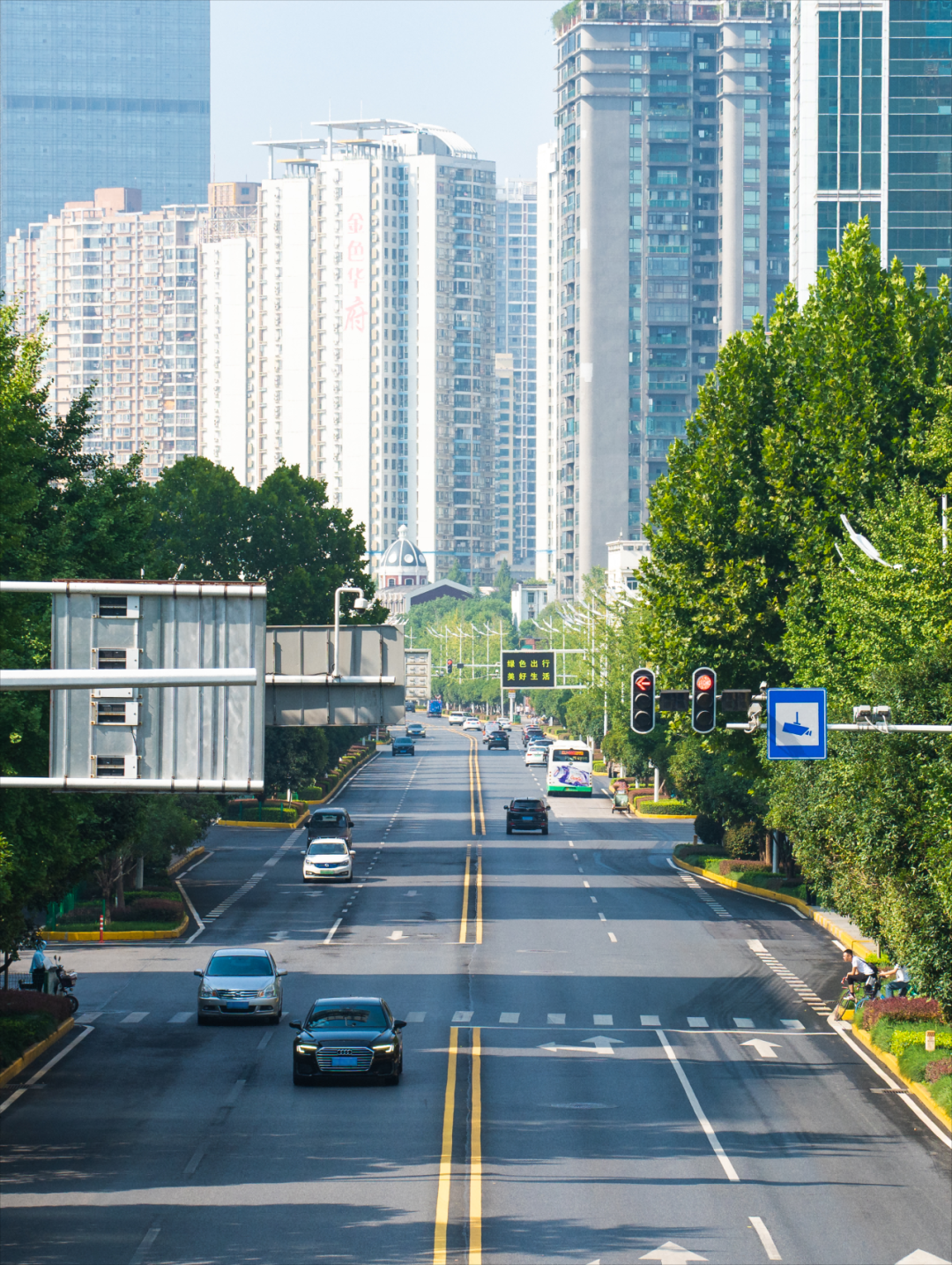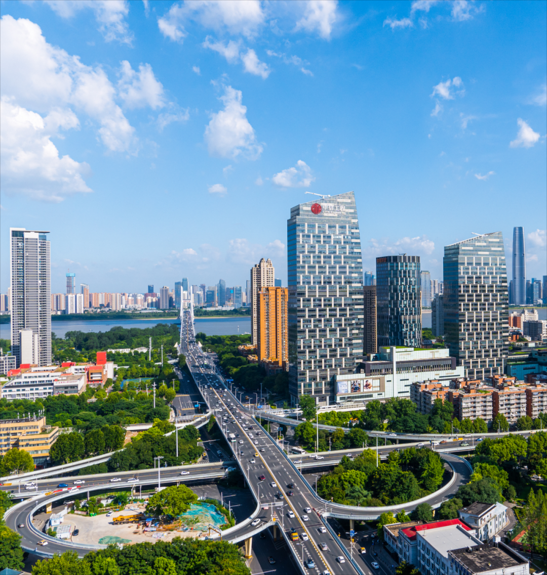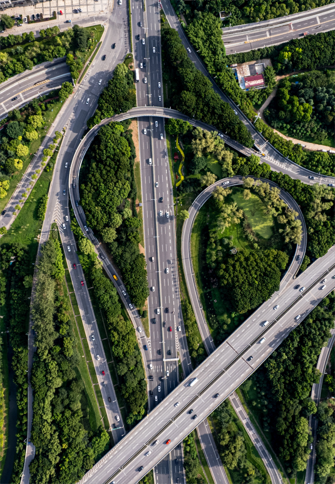 城市的经济发展离不开立交桥,竹叶山立交桥俯卧在江岸,默默地撑起车水马龙。在这里,扁平的交通变得立体,空间内的车流无需再等待红绿灯,大大增加通行效率,加快每一位城市奋斗者的逐梦速度。