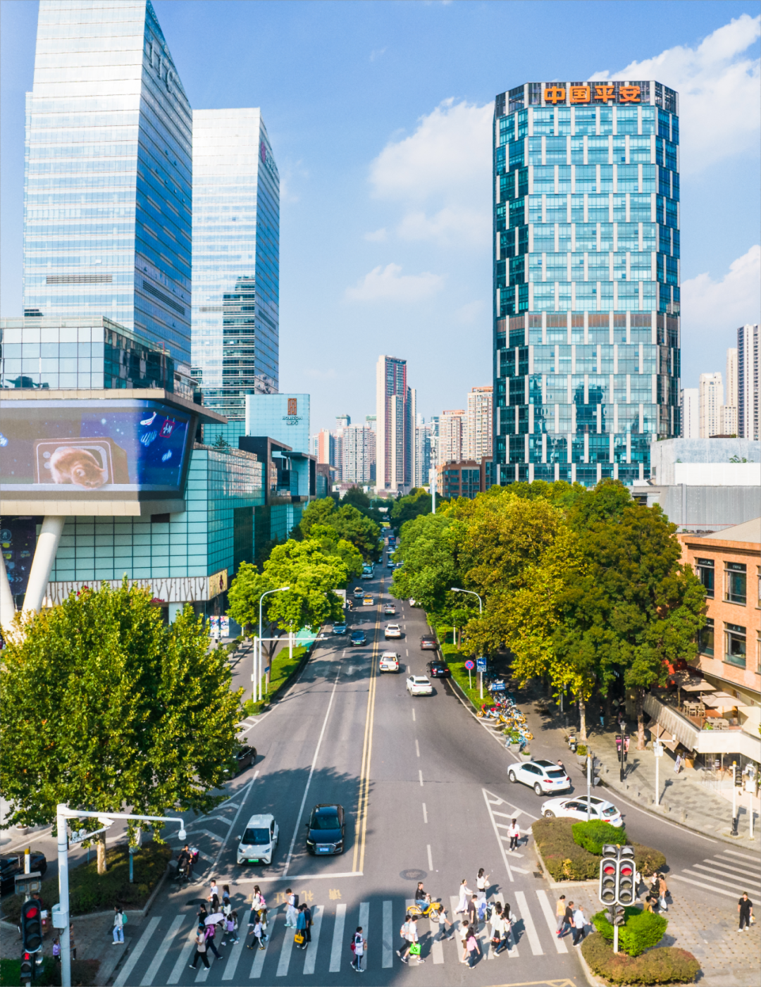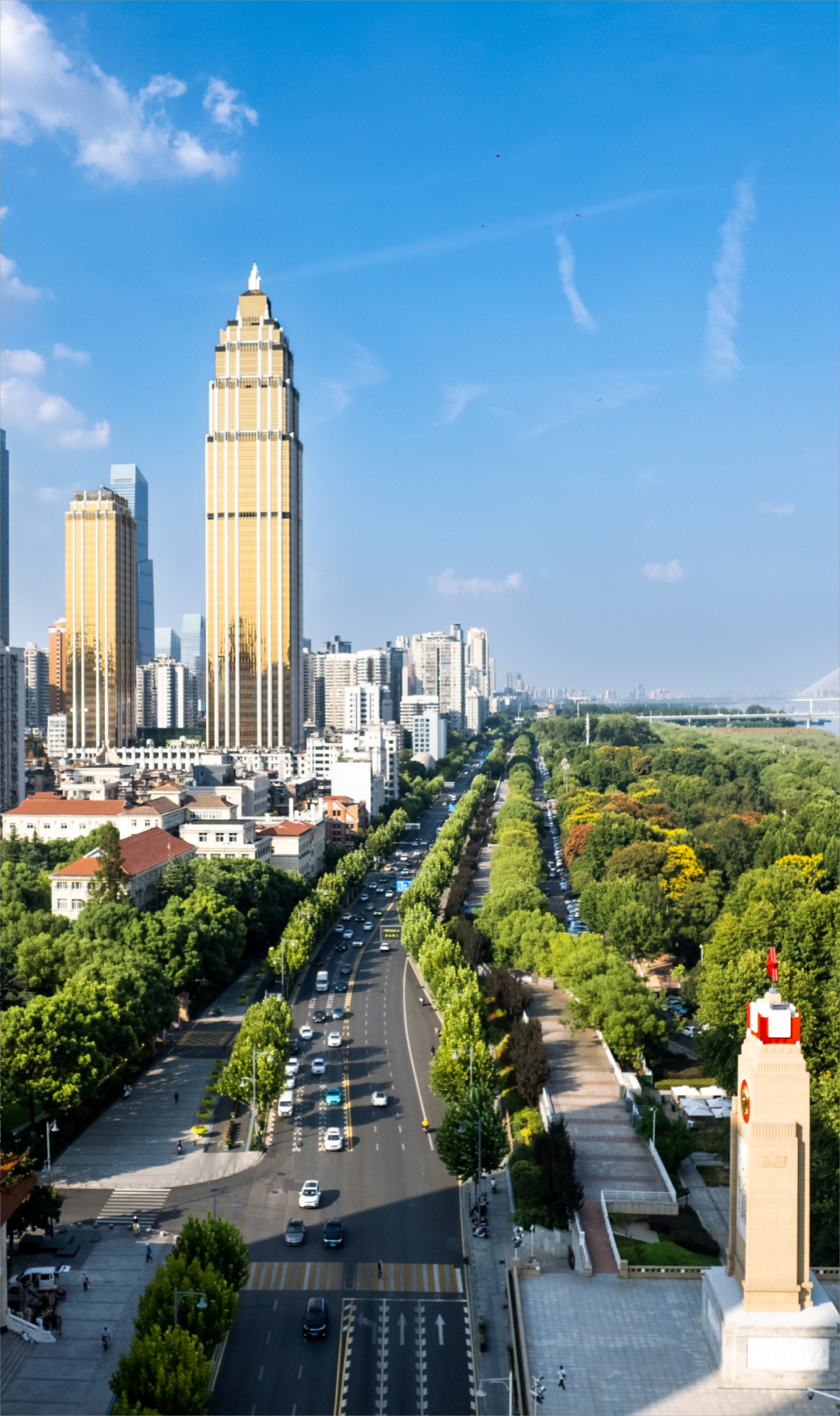 建设大道1988年由义务劳动大军修筑而成,并以“建设”冠名纪念那段城市大建设的岁月。在这里,诞生了武汉第一座高档写字楼、第一座五星级酒店、第一栋银行总部高楼,集合了一大批中外资银行、多国领事馆和众多外企,鳞次栉比的高楼、人声鼎沸的商圈汇聚成流金淌银的“金腰带”。