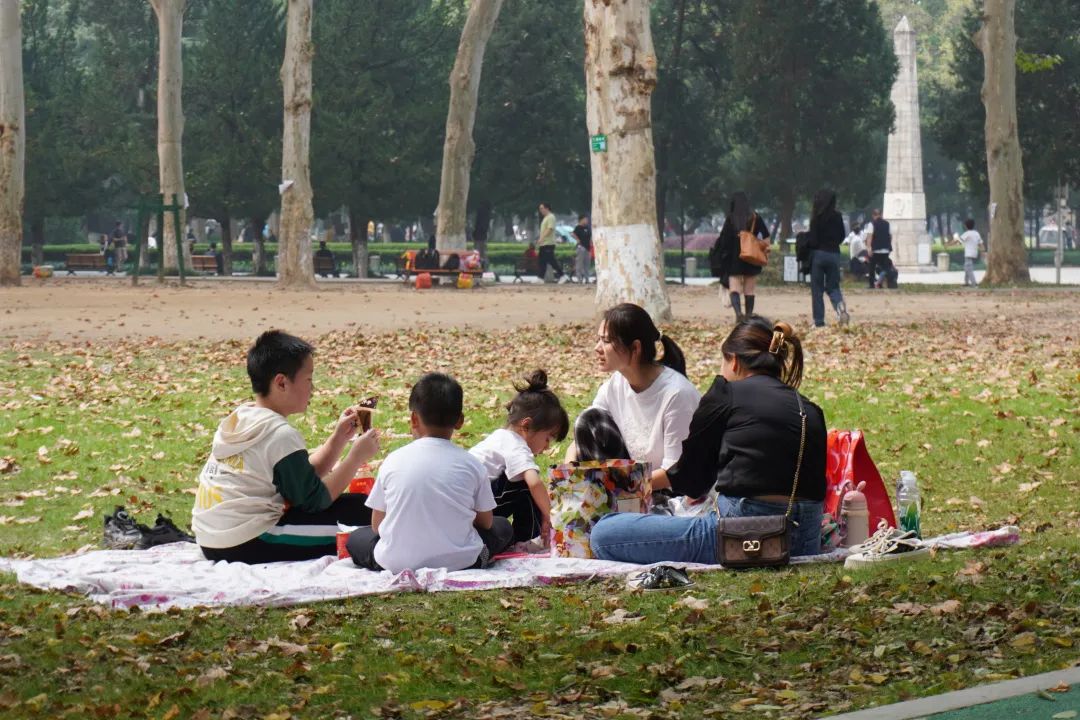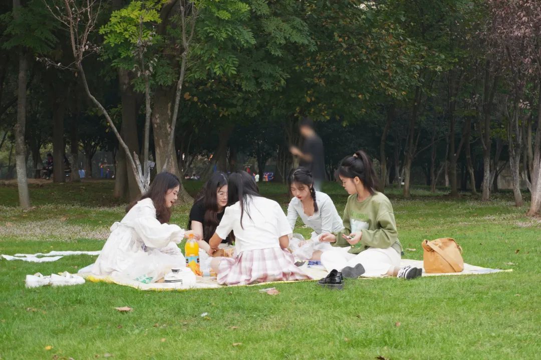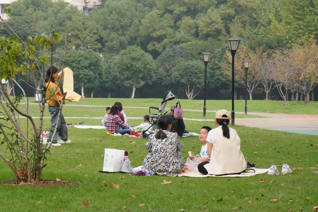 秋日的江岸,没有了夏日的燥热,天气晴好时,户外的草坪上,总是会有很多露营野餐的人。