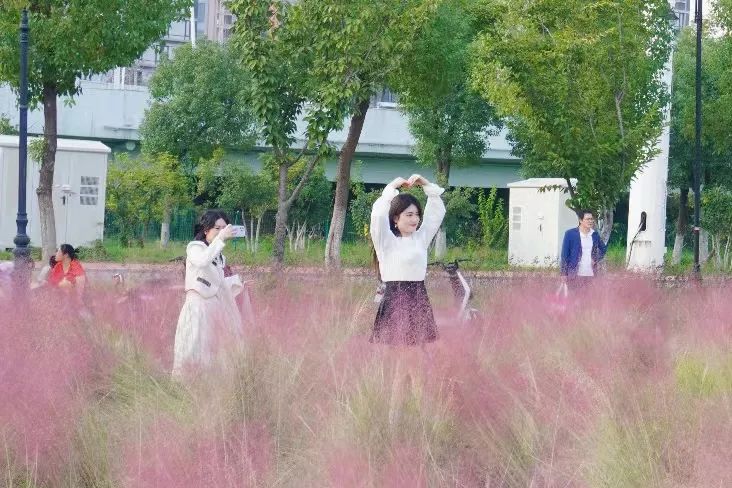漫步在赏花小道上,半身高的粉黛乱子草萦绕身侧,放眼望去,都是凹出各种美美造型的人,随便一拍,超出片。(记得穿浅色衣服,拍照效果更好噢。)