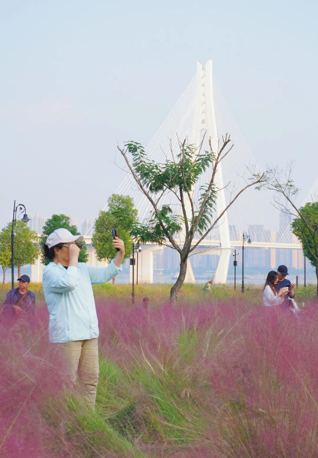 秋日的限定美景之一,位于汉口江滩的“网红”粉黛乱子草,早已浪漫绽放!