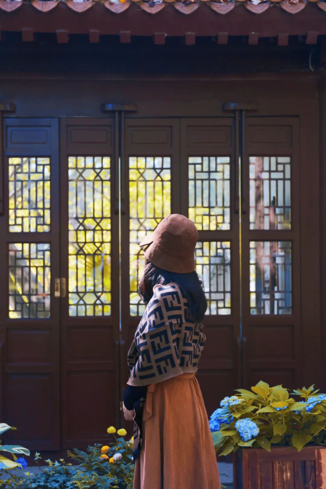 这里随便拍一拍都很出片。廊檐下,花窗前,古色古香的建筑与静谧的公园融为一体,古朴中透着高雅感。