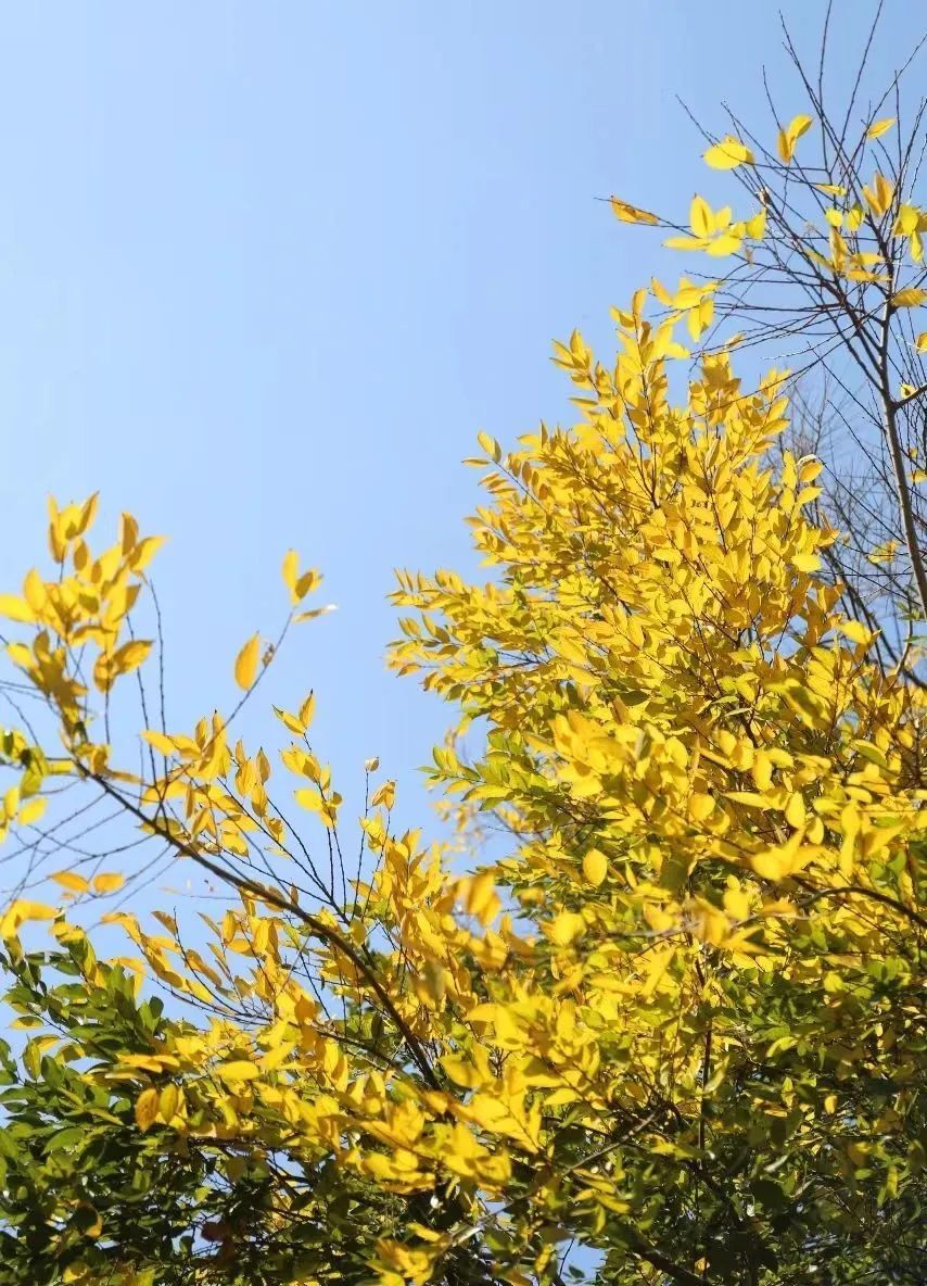 如果说落叶是“美拉德”调色盘的底色,那么银杏则是亮眼的“高光”,是令人迷恋的点睛之笔。