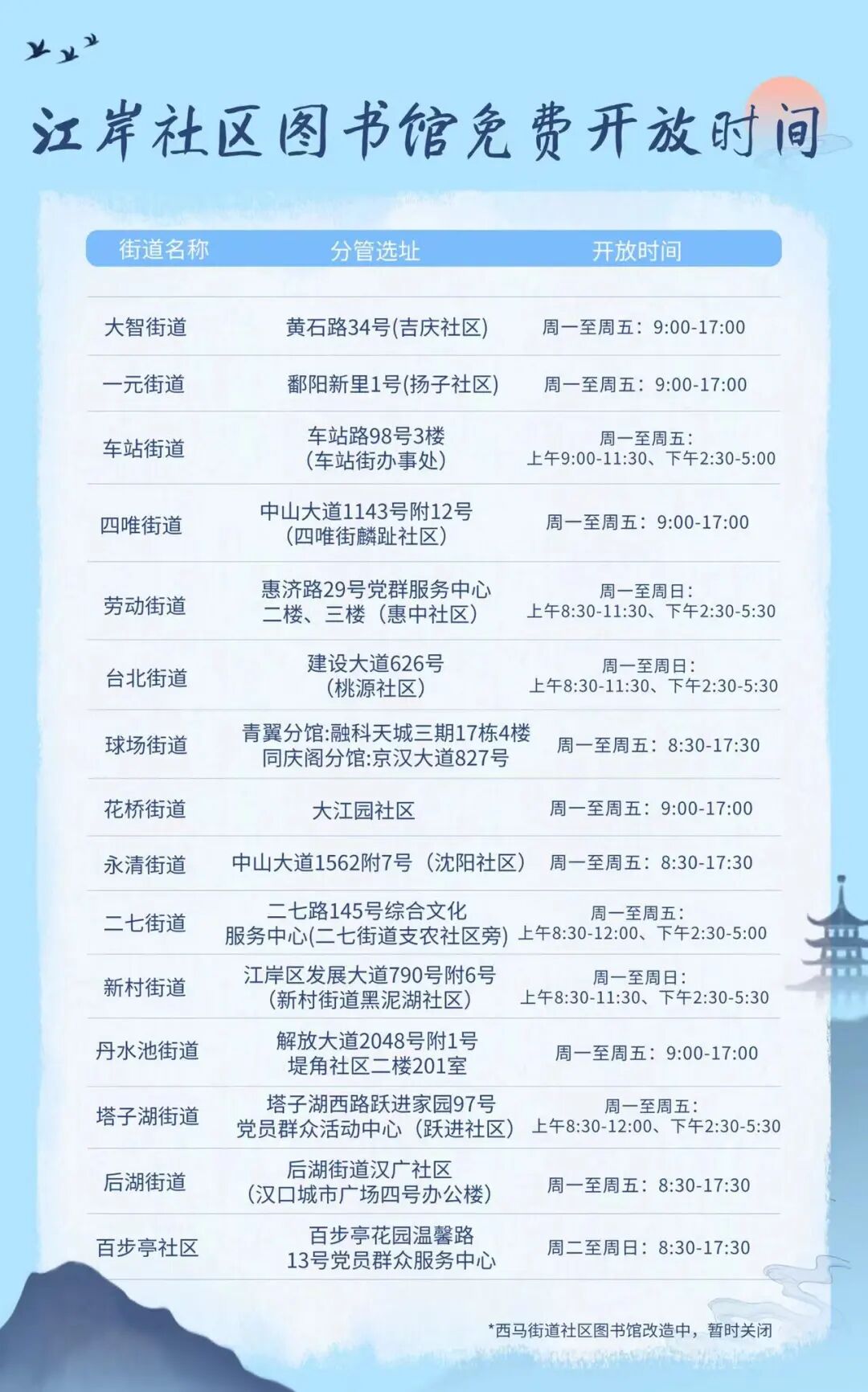 *附江岸社区图书馆地址及开放时间