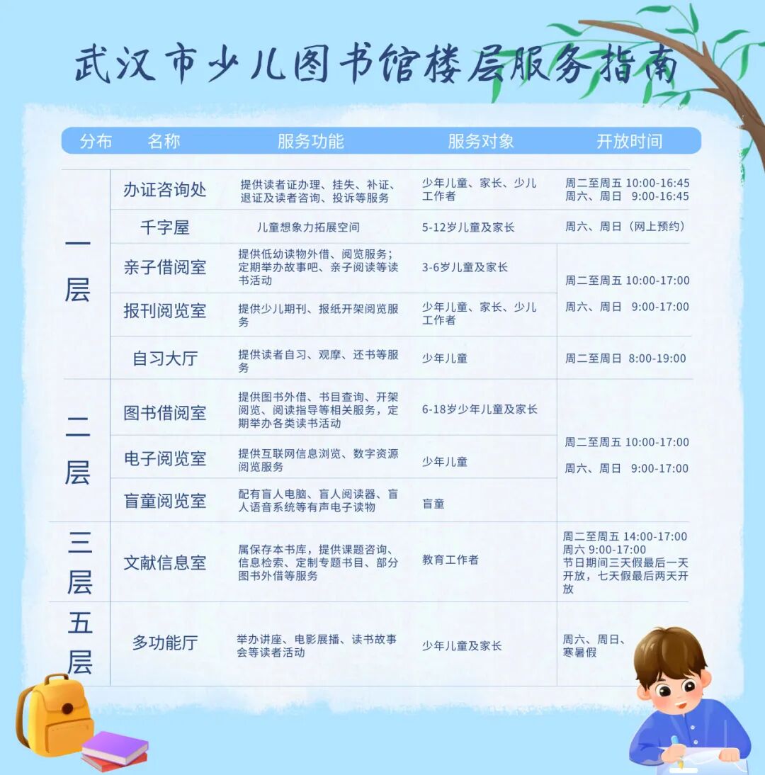 *附武汉市少儿图书馆楼层指南及开放时间