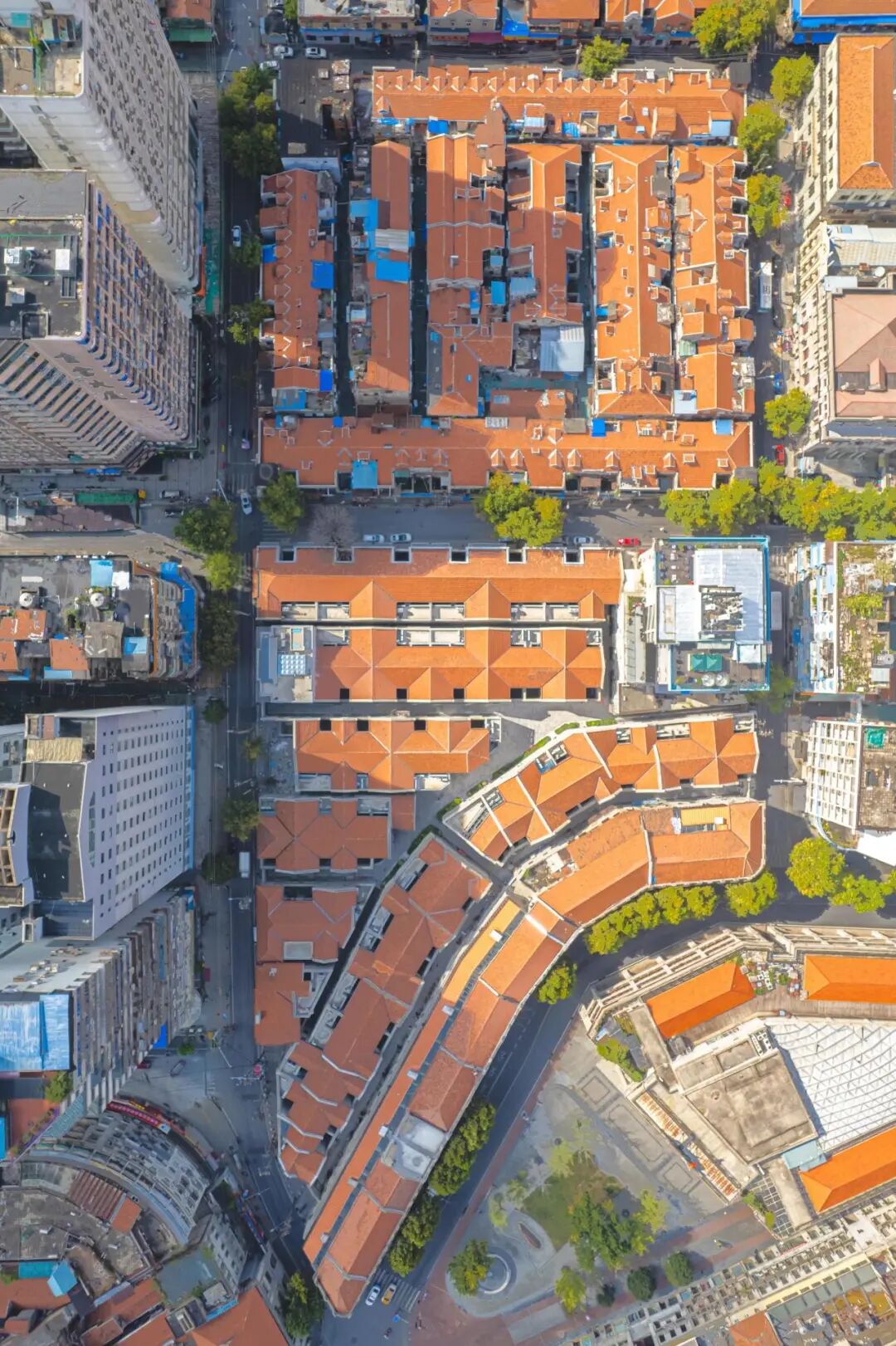 以垂直视角俯瞰江岸,呈现出截然不同的另一种美,整个汉口历史风貌区一览无余。