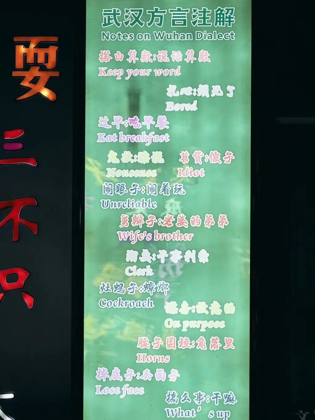 江岸人的创意无处不在,墙边、招牌、玻璃.....处处都是段子手们大展身手的绝佳地段。
