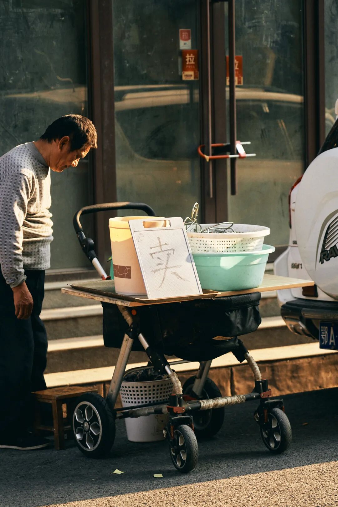 主打一个神秘,非要让路人猜猜他是要买还是要卖。