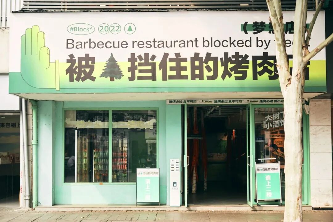 被树挡住的烤肉店一枚,自然环境和脑洞的完美结合。