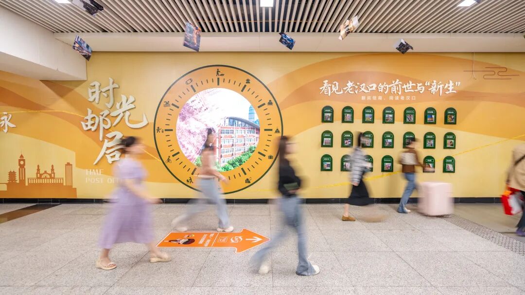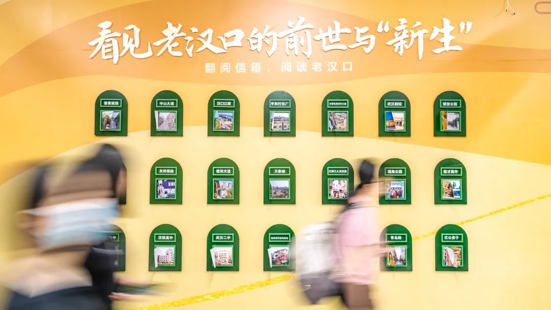 这些信箱形状的小邮箱里涵盖了江岸经济、文化、教育、科创、历史风貌等的新旧照片。翻阅信箱,乘客便可穿越时光,窥见老汉口的前世与“新生”。