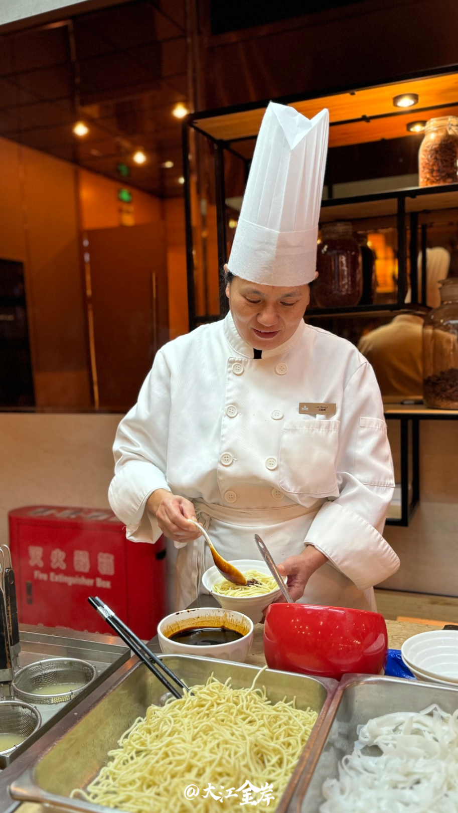 “帝盛的自助早餐有面档,现下的热干面、汤面的浇头每天换,还有卤鸡蛋、包子、馒头、白粥和各种小菜......”