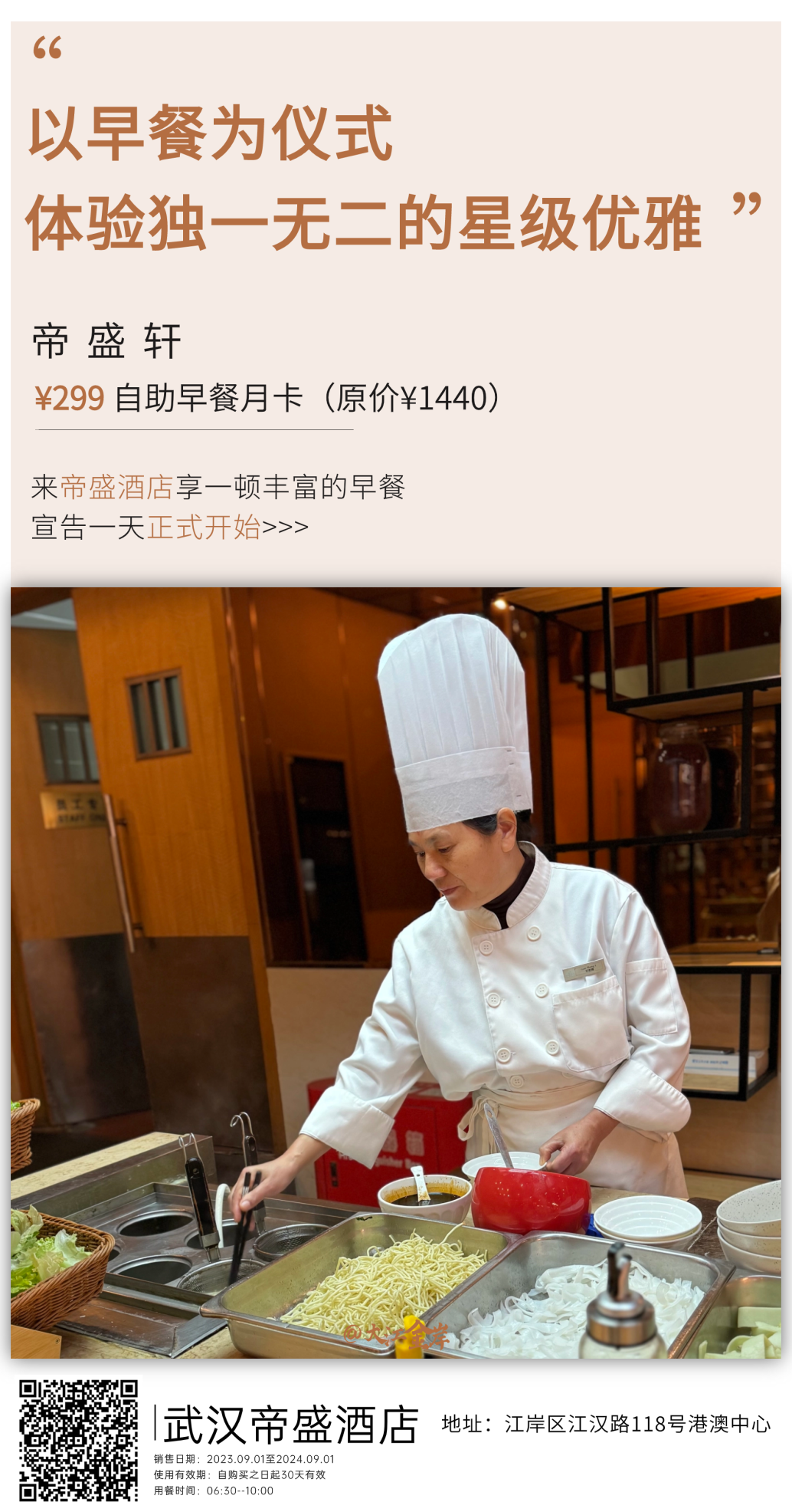 江岸的帝盛酒店率先赶上这波“时髦”,推出了“299 帝盛轩早餐月卡”。
