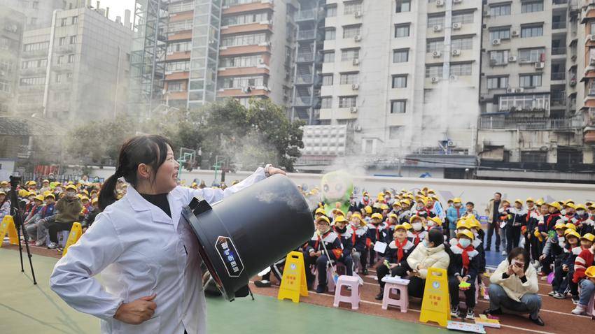 无人机方阵表演、干冰蘑菇云、空气大炮、神奇的漩涡……12月29日,江岸区澳门路小学第十五届科技嘉年华活动热闹开幕。学生们观摩学校科技社团的精彩展示,沉浸式参与多维互动,在充满挑战的科技闯关活动中感受科技的魅力。
