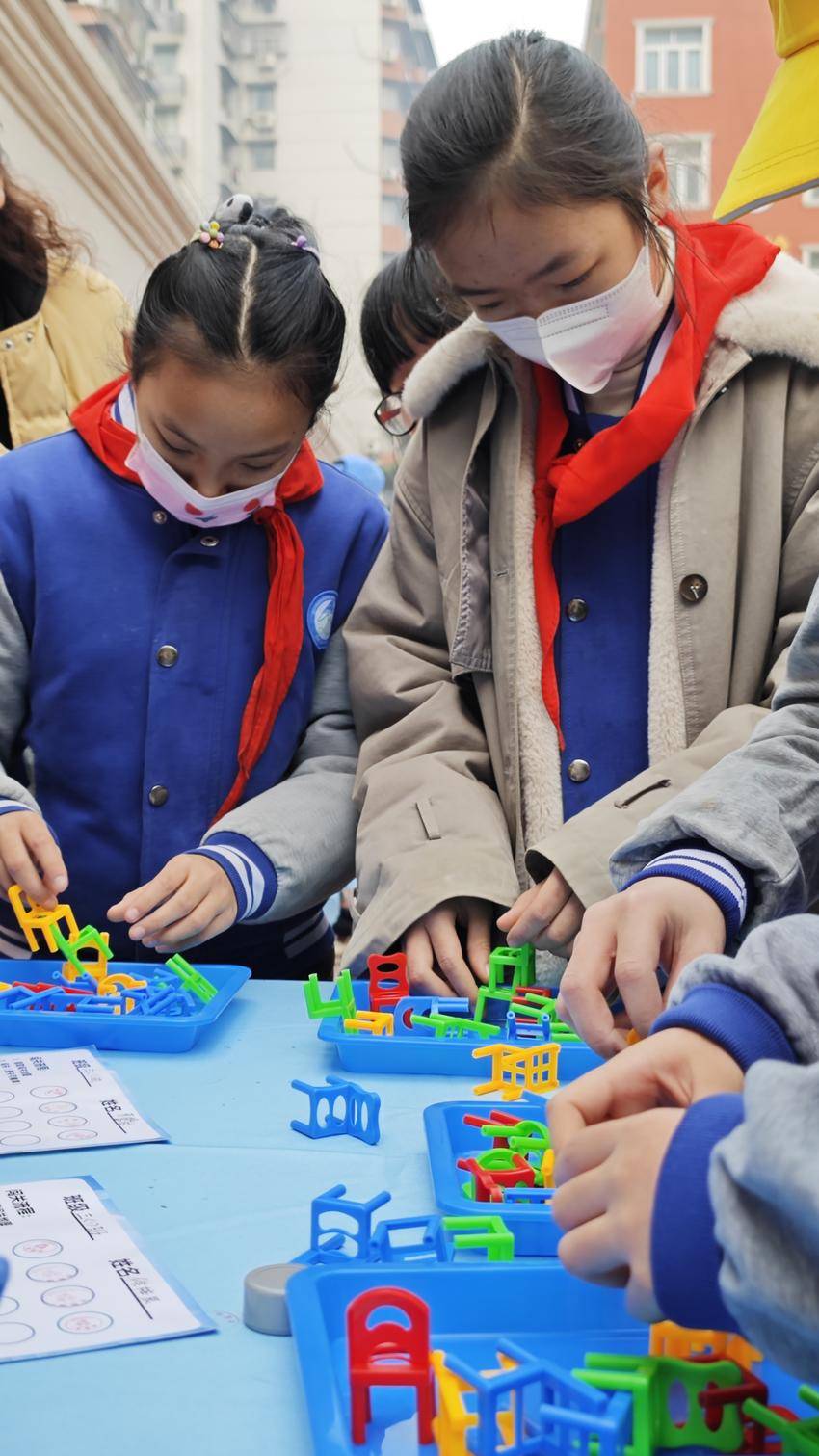 孩子们最为期待的环节,当属科技嘉年华闯关活动。大家在老师的带领下,参与“穿越火线”“一飞冲天”“超级空气炮”“百步穿杨”等12项闯关活动,沉浸式感受科技的奇妙魅力。只见孩子们手握测试铁圈棒,避免与白铁线接触,小心翼翼地随着角度的变化,移动着铁圈棒抵达终点,完成“穿越火线”闯关,现场欢笑声和惊呼声此起彼伏,响彻校园……