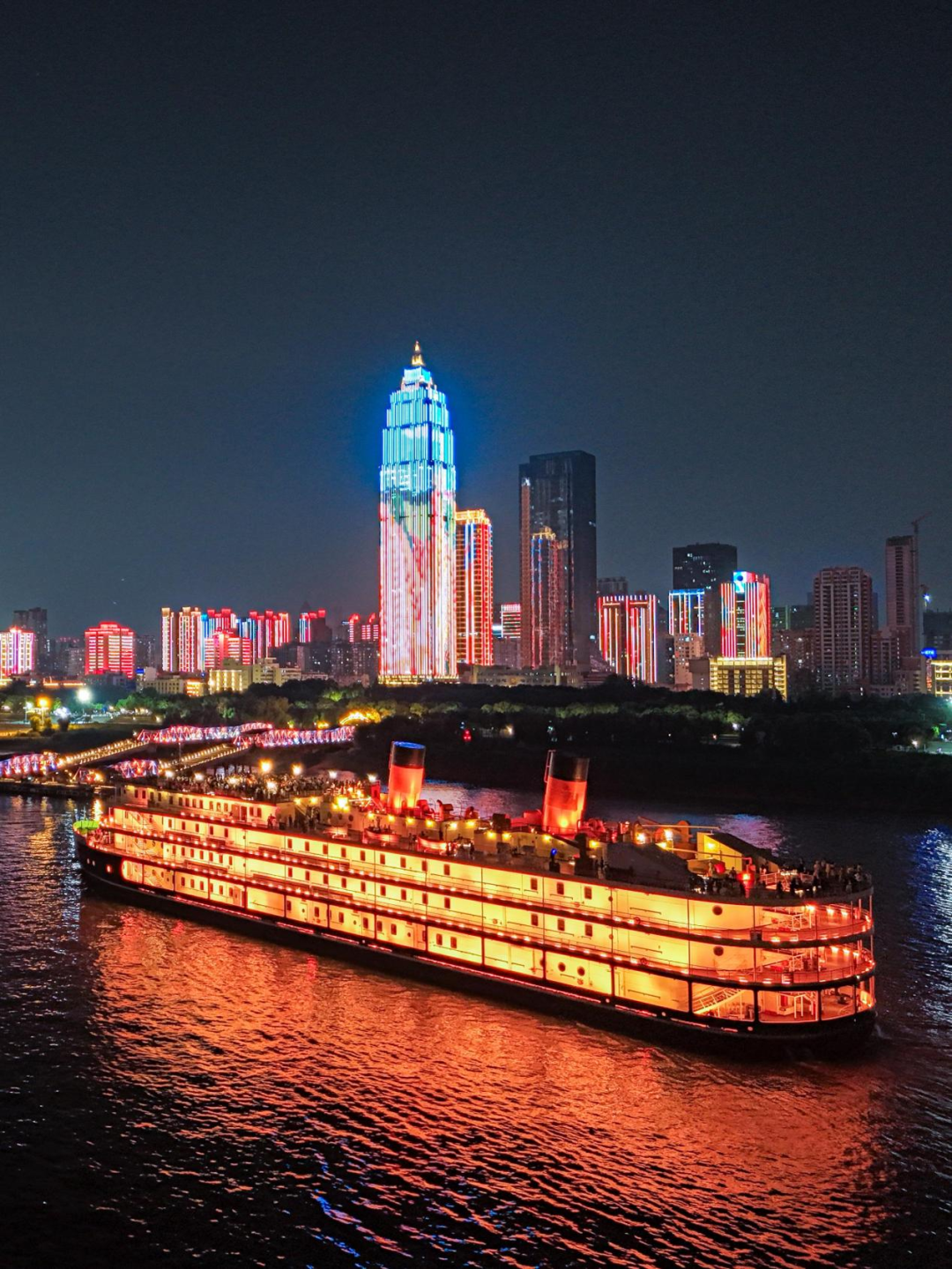 感受江风与灯光秀的浪漫融合