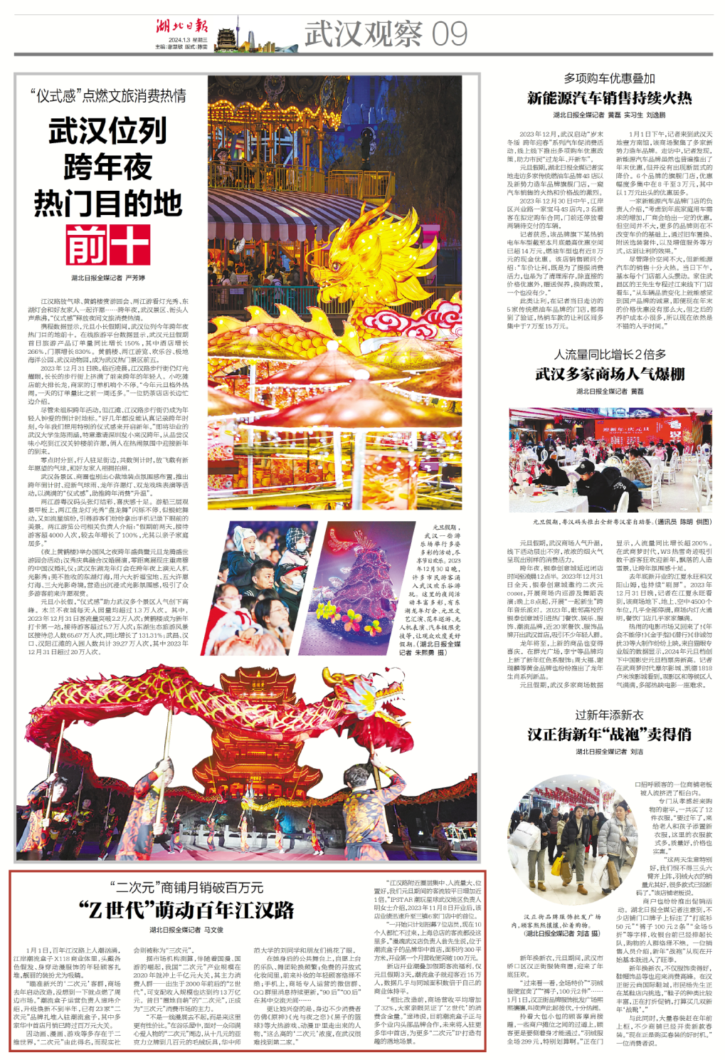 1月1日,百年江汉路上人潮汹涌,江岸潮流盒子X118商业体里,头戴各色假发、身穿动漫服饰的年轻顾客扎堆,靓丽的装扮尤为吸睛。