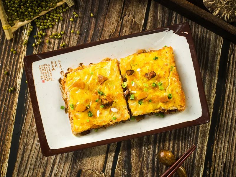 别忘了老通城的三鲜豆皮,这里的三鲜指的是鲜肉丁、香菇丁和嫩笋丁,大铁锅里绿豆面和蛋液摊成的外皮被煎到焦脆,正宗的豆皮一定是外脆内软、油而不腻。