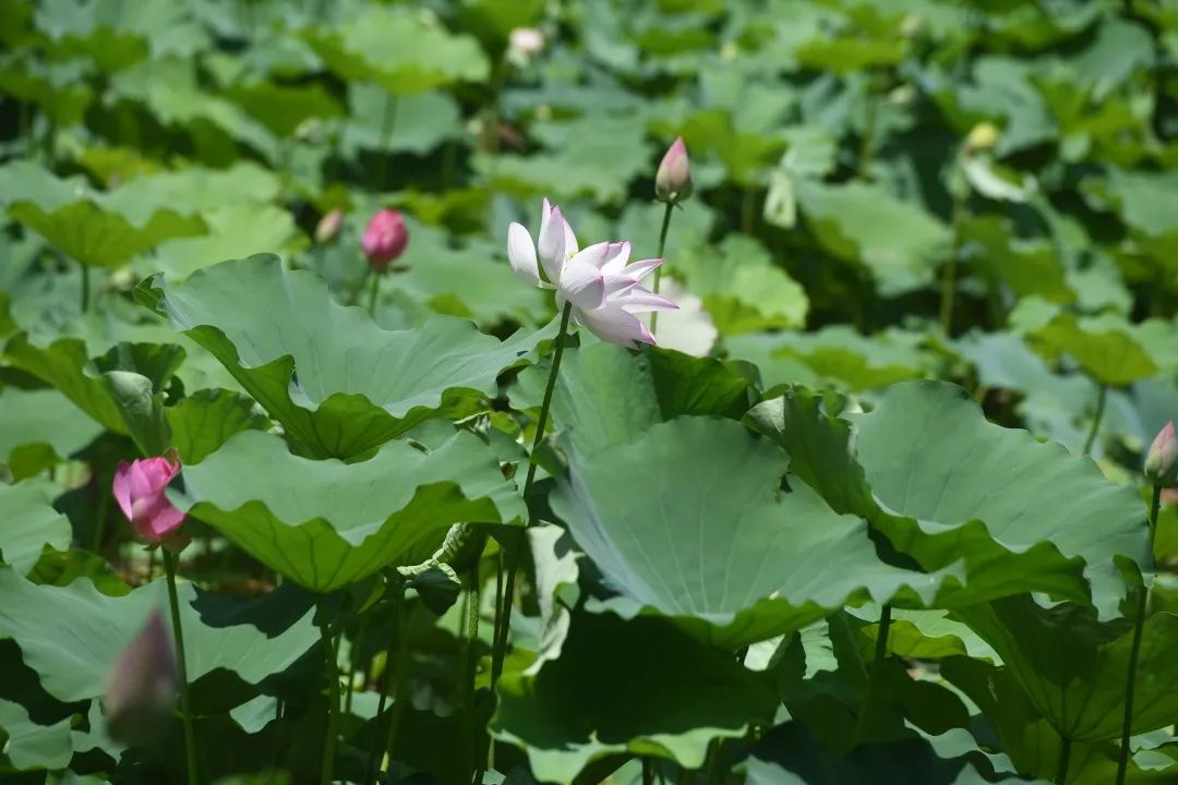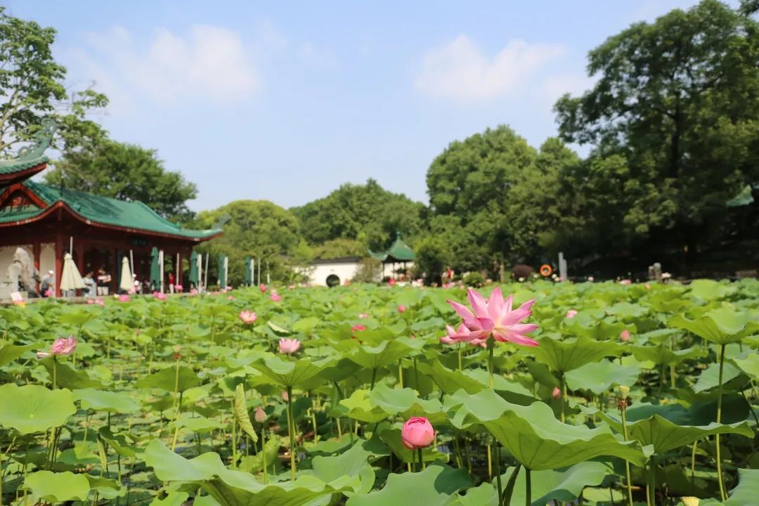 每到夏天去公园赏荷,已成为江岸人的消暑日常。江岸可赏莲,莲叶何田田,道不尽江岸好风光。在宝岛公园放眼望去,随风摇曳的荷叶青翠欲滴,粉色花瓣盈盈舒展,早已暗香浮动。
